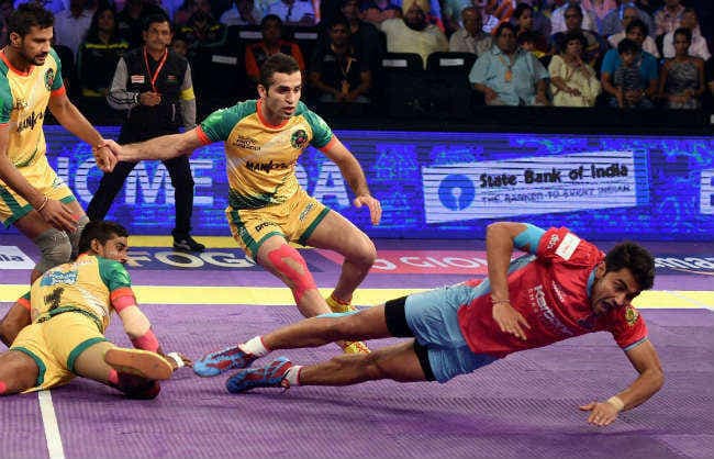 मुंबई : जयपुर पिंकपैंथर्स ने पहले हाफ में पिछड़ने के बावजूद अच्छी वापसी करके आज यहां पटना पाइरेट्स को 29-22 से हराकर स्टार स्पोर्ट्स प्रो कबड्डी लीग में अपनी आठवीं जीत दर्ज की. जयपुर की टीम पहले हाफ में अच्छा प्रदर्शन नहीं कर पायी और वह 9-11 से पीछे चल रही थी.