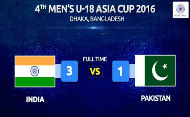 भारत की तरफ से नीलम संदीप (46वें) हालांकि इसके एक मिनट बाद ही पेनल्टी कार्नर को गोल में बदलकर स्कोर 3-0 कर दिया. पाकिस्तान के लिये अमजद अली खान ने 63वें मिनट में अपना पहला और एकमात्र गोल किया लेकिन तब तक काफी देर हो चुकी थी. भारत की जीत के तुरंत बाद खेल मंत्री विजय गोयल ने भारतीय टीम को पाकिस्तान पर जीत के लिये ट्विटर पर बधाई दी.