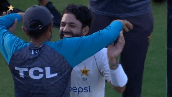 Pak vs Ban:पाकिस्तान और बांग्लादेश के बीच पहले टेस्ट मैच के दूसरे दिन गुरुवार को मोहम्मद रिजवान और बाबर आजम के बीच दोस्ती का नजारा देखने को मिला. पाकिस्तान ने 448/6 रन बनाकर अपनी पहली पारी घोषित की, जिसके बाद दोनों ने कुछ हल्के-फुल्के पल साझा किए. रिजवान अपनी टीम के लिए सर्वश्रेष्ठ प्रदर्शन करने वाले खिलाड़ी रहे, उन्होंने 239 गेंदों पर नाबाद 171 रन बनाए.