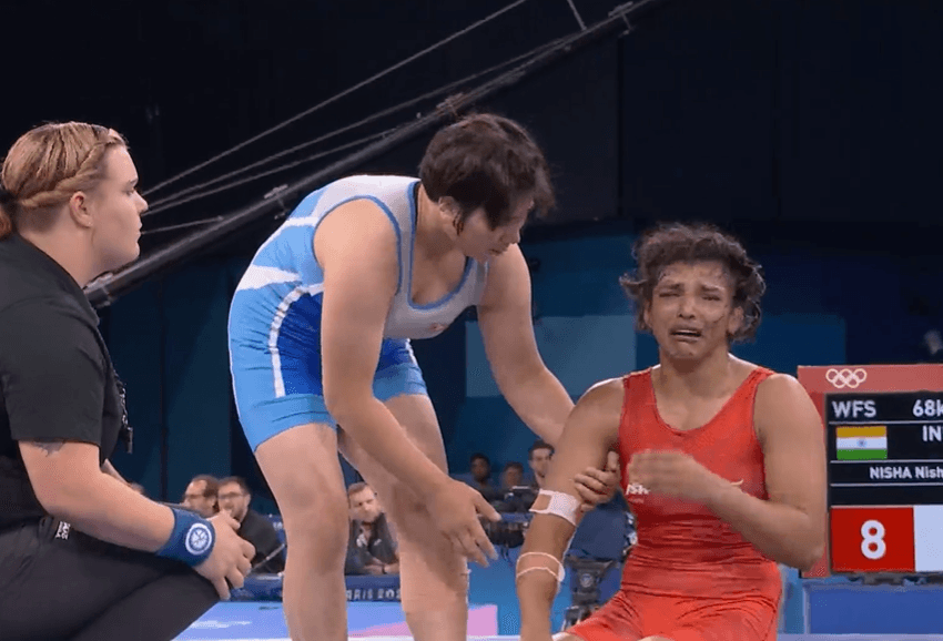 Paris Olympic 2024:कुश्ती क्वार्टर फाइनल में हारने के बाद घायल निशा दहिया रो पड़ीं
