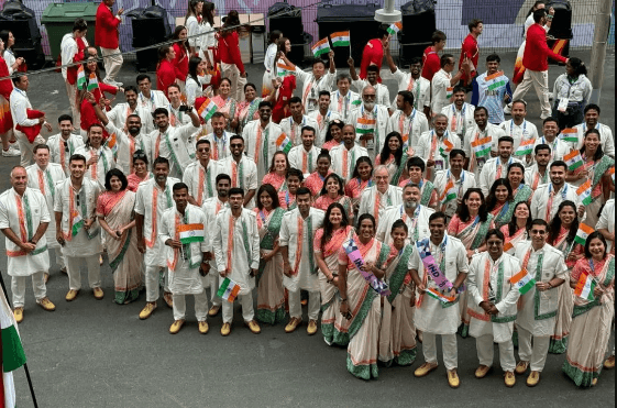 पुरुषों के लिए पारंपरिक कुर्ता बंडी सेट और महिलाओं के लिए साड़ी पहने भारतीय एथलीटों ने भारतीय तिरंगे के जीवंत रंगों का प्रदर्शन किया. प्रसिद्ध फैशन डिजाइनर तरुण तहिलियानी द्वारा डिजाइन किए गए परिधानों में इकत से प्रेरित प्रिंट और बनारसी ब्रोकेड शामिल थे, जो परेड में में इमोशन जोड़ रहे थे.
