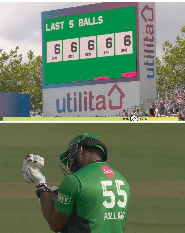 राशिद खान और पोलार्ड के मुकाबले से पहले, सदर्न ब्रेव को 20 गेंदों पर 49 रन चाहिए थे, और यह सब पोलार्ड पर निर्भर था कि वह कुछ खास करें. उन्होंने राशिद खान को रोज बाउल के कोने के चारों ओर से हिट करके घरेलू टीम को खेल में वापस ला दिया.