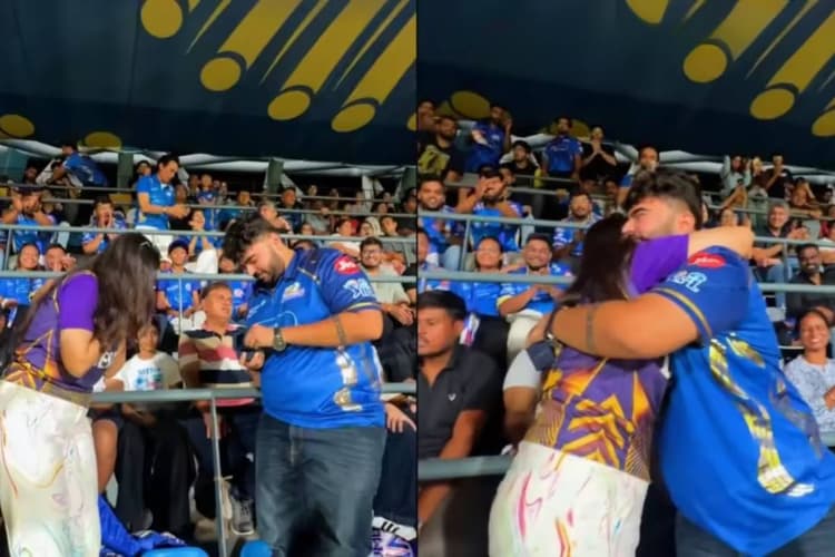 IPL 2026 Stadium Viral Proposal: मुंबई और केकेआर के बीच वानखेडे स्टेडियम मे खेले गए मैच मे एक बेहद मजेदार घटना देखने को मिली. स्टैंड्स मे एक लडका अपनी गर्लफ्रेंड को प्रपोज कर रहा था, तभी उसके हाथ से सगाई की अंगूठी नीचे गिर गई. आस-पास बैठे लोगो ने अंगूठी ढूंढने मे उसकी मदद की जिसके बाद लडके ने अपना प्रपोजल पूरा किया. केकेआर ने इस खास पल का वीडियो सोशल मीडिया पर शेयर किया है जो अब खूब वायरल हो रहा है. इस मैच मे मुंबई ने 13 साल बाद अपना पहला ओपनिंग मुकाबला जीतकर 6 विकेट से शानदार जीत भी दर्ज की है.