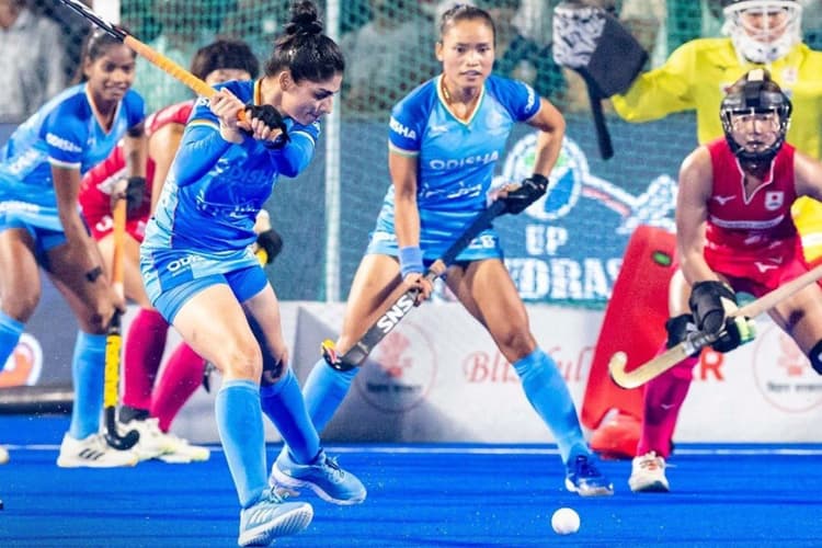 Women’s Asian Hockey Champions Trophy: पिछले बार की चैंपियन भारतीय महिला हॉकी टीम ने रविवार को हुए अपने अंतिम लीग मैच में जापान को 3-0 से हरा दिया. राजगीर के नवनिर्मित हॉकी स्टेडियम में भारत ने इस जीत के साथ सेमाफाइनल के लिए क्वालिफाई कर लिया. भारतीय टीम ने शनिवार को ही चीन को हराकर अपना स्थान पक्का कर लिया था, लेकिन जापान के खिलाफ जीत ने भारतीय टीम को अंक तालिका में शीर्ष पर पहुंचा दिया. भारतीय टीम की जीत का अजेय रथ जारी है.