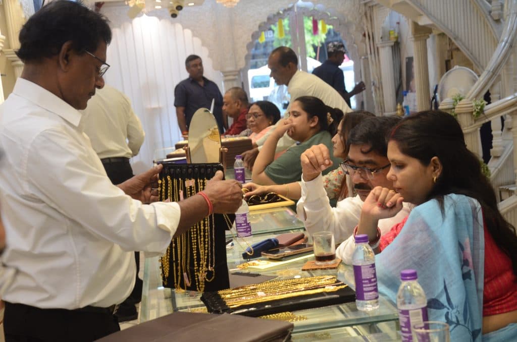 अक्षय तृतीया पर शहर के पटना सिटी स्थित जगमोहन लाल शिवरत्न लाल ज्वेलर्स में गहनों की खरीदारी पर छूट दी जा रही है. ग्राहकों की मांग पर हल्के व कम वजन वाले गहनों का कलेक्शन उपलब्ध कराया गया है. गहनों की खरीद पर निश्चित उपहार के साथ कई तरह की आकर्षक छूट दी जा रही है. यह अक्षय तृतीया तक जारी रहेगी. – सौरभ रस्तोगी, जगमोहन लाल शिवरत्न लाल ज्वेलर्स