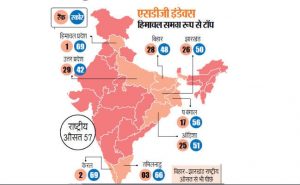 नीति आयोग के सतत विकास लक्ष्य (एसडीजी) सूचकांक-2018 में हिमाचल प्रदेश, केरल और तमिलनाडु सबसे बेहतर प्रदर्शन करने वाले राज्य बने हैं. सबसे खराब प्रदर्शन करने वाले राज्यों में असम, बिहार और उत्तर प्रदेश हैं. संघ शासित प्रदेशों में चंडीगढ़ सबसे आगे है.