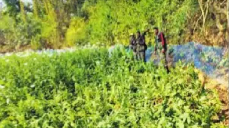 तीन एकड़ में लगी अफीम की फसल को पुलिस ने किया नष्ट