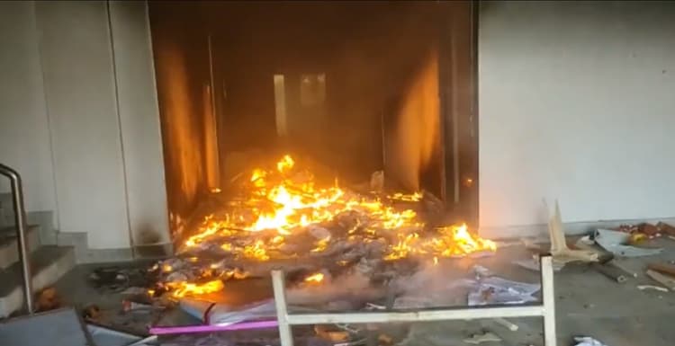 जानकारी के अनुसार गुरुवार को बिहार में सेना भर्ती की अग्निपथ योजना को लेकर जगह-जगह पर विरोध हो रहा है. इसी क्रम में नवादा में गुस्साये छात्रों ने भाजपा जिला कार्यालय पर हमला बोल दिया है. आक्रोशित बेरोजगारों ने भाजपा कार्यालय में जमकर तोड़फोड़ की और उसके बाद आग लगा दिया. इस दौरान गुस्साए बेरोजगारों ने कार्यालय में रखे फर्नीचर और अन्य सामानों को क्षतिग्रस्त कर दिया. पूरे कार्यालय को आग के हवाले कर दिया है.
