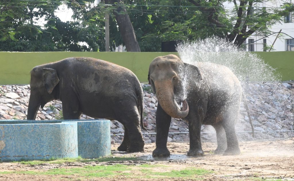 बाघ, गैंडा गर्मी से बचने के लिए पानी का सहारा ले रहे हैं, वहीं चिंपाजी के लिए बड़े फैन चलाये जा रहे हैं. पक्षियों के बाड़े में एग्रोनेट कुछ हिस्सों में लगाया गया है.साथ ही पक्षी वाटर स्प्रिंकलर के नीचे बैठकर ठंडक महसूस कर रहे हैं.