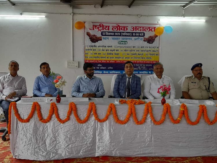 अररिया. नालसा नयी दिल्ली व बालसा पटना के निर्देश के आलोक में शनिवार को जिला विधिक सेवा प्राधिकरण डीएलएसए के तत्वावधान में न्याय मंडल अररिया में राष्ट्रीय लोक अदालत का आयोजन किया गया. इसकी अगुआई न्याय मंडल अररिया के प्रधान जिला व सत्र न्यायाधीश गुंजन पांडेय ने की. न्याय मंडल अररिया के प्रांगण में आयोजित राष्ट्रीय लोक अदालत में 1625 सुलहनीय मामलों का निबटारा पक्षकारों की मौजूदगी में उनकी आपसी सहमति व रजामंदी के आधार पर किया गया. प्रथम सत्र में राष्ट्रीय लोक अदालत का विधिवत उद्घाटन प्रधान जिला व सत्र न्यायाधीश गुंजन पांडेय ने दीप प्रज्वलित कर किया. दीप प्रज्वलन के इस कार्य में फैमिली जज अविनाश कुमार, एडीजे-01 मनोज कुमार तिवारी, डीएम, एसपी व अवर न्यायाधीश सह डीएलएसए सेक्रेटरी रोहित श्रीवास्तव ने अपनी सहभागिता रखी. उपस्थित वक्ताओं ने राष्ट्रीय लोक अदालत की महत्ता पर विशेष रूप से प्रकाश डालते हुए वादकारियों से सुलह समझौता करने की अपील की गयी. उद्घाटन सत्र के मौके पर डीजे डिवीजन व सीजेएम डिवीजन से जुड़े न्यायिक पदाधिकारियों के अलावा डीएलएसए के पैनल अधिवक्ता, एलएडीसी के सभी पदाधिकारी, विभिन्न विभागों के अधिकारी व कोर्ट कर्मी मौजूद दिखे. बताया गया कि दूसरे सत्र में राष्ट्रीय लोक अदालत शिविर में सुलहनीय आपराधिक वादों के 638 मामले, मैट्रीमोनियल के 12 केसेस, बीएसएनएल, मोटर व्हक़ील चालान मेटर्स सहित अन्य कंपाउनडबल मामलों के 59 केसेस, एग्जीक्यूटिव साइड पुराना धारा 107 सीआरपीसी नया धारा 126 बीएनएसएस के तहत 192 मामलो का निबटारा समझौता के बिंदु पर किया गया. वहीं जिले के सभी बैंक मिलकर कुल 777 मामलों में 03 करोड़ 87 लाख 30 हजार 840 रुपये समझौता के तहत 02 करोड़ 46 लाख 17 हजार 996 रुपये वसूली किया गया. अवर न्यायाधीश सह डीएलएसए सेक्रेटरी रोहित श्रीवास्तव ने जानकारी दिया कि राष्ट्रीय लोक अदालत में अधिकाधिक मामलो के लिये 17 बैंच बनाये गये. इसमें 16 बेचों में न्यायिक पदाधिकारी व गैर न्यायिक पदाधिकारी के रूप में अधिवक्ता रहें व 17 वें बैंच में कार्यपालिका की ओर से डीएम की ओर से प्रतिनियुक्ति अधिकारी मौजूद थे. मंच का संचालन जिला अधिवक्ता संघ के पूर्व अध्यक्ष विनोद प्रसाद ने की. जबकि धन्यवाद ज्ञापन डीएलएसए सेक्रेटरी रोहित श्रीवास्तव ने की.