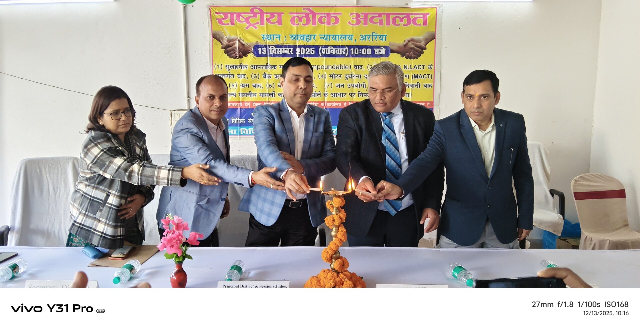 अररिया. नालसा नयी दिल्ली व बालसा पटना के निर्देश के आलोक में शनिवार को जिला विधिक सेवा प्राधिकरण (डीएलएसए) के तत्वावधान में न्याय मंडल अररिया में राष्ट्रीय लोक अदालत का आयोजन किया गया. इसकी अनुवाई न्याय मंडल अररिया के प्रधान जिला व सत्र न्यायाधीश गुंजन पांडेय ने की. न्याय मंडल अररिया में आयोजित राष्ट्रीय लोक अदालत में 1681 सुलहनीय मामलों का निबटारा पक्षकारों की मौजूदगी में उनकी आपसी सहमति व रजामंदी के आधार पर किया गया. प्रथम सत्र में राष्ट्रीय लोक अदालत का विधिवत उद्घाटन प्रधान जिला व सत्र न्यायाधीश गुंजन पांडेय ने दीप प्रज्वलित कर किया. दीप प्रज्वलन के इस कार्य में फैमिली जज अविनाश कुमार, एडीजे-01 मनोज कुमार तिवारी, अवर न्यायाधीश सह डीएलएसए सेक्रेटरी रोहित श्रीवास्तव, डीडीसी रोजी कुमारी ने संयुक्त रूप से अपनी सहभागिता रखी. उपस्थित वक्ताओं ने राष्ट्रीय लोक अदालत की महत्ता पर विशेष रूप से प्रकाश डालते हुए वादकारियों से सुलह समझौता करने की अपील की गयी. उद्घाटन सत्र के मौके पर डीजे डिवीजन व सीजेएम डिवीजन से जुड़े न्यायिक पदाधिकारियों के अलावा डीएलएसए के पैनल अधिवक्ता श्रवण कुमार झा, एलएडीसी चीफ विनय ठाकुर, एलएडीसी डिप्टी चीफ सोहन लाल ठाकुर, एलएडीसी सहायक सोनी कुमारी, जिला अधिवक्ता संघ के महासचिव छंगुरी मंडल, एलडीएम इंदु शेखर मल्लिक सहित विभिन्न विभागों के अधिकारीगण व कोर्ट कर्मी मौजूद थे. बताया गया कि दूसरे सत्र में राष्ट्रीय लोक अदालत शिविर में सुलहनीय आपराधिक वादों के 735 मामले, मैट्रिमोनियल के 13 केसेस, बीएसएनएल के 08 मामले, एग्जीक्यूटिव साइड पुराना धारा 107 सीआरपीसी नया धारा 126 बीएनएसएस के तहत 212 मामलों का निबटारा समझौता के बिंदु पर किया गया. वहीं जिले के सभी बैंक मिलकर कुल 03 करोड़ 51 लाख 56 हजार 263 रुपये समझौता के तहत 01 करोड़ 10 लाख 07 हजार 287 रुपये वसूली की गयी. अवर न्यायाधीश सह डीएलएसए सेक्रेटरी रोहित श्रीवास्तव ने जानकारी दिया कि राष्ट्रीय लोक अदालत में अधिकाधिक मामलों के लिए 17 बैंच बनाये गए. जिसमें 16 बेंचों में न्यायिक पदाधिकारी व गैर न्यायिक पदाधिकारी के रूप में अधिवक्तागण रहें. 17 वें बेंच में कार्यपालिका की ओर से डीएम की ओर से प्रतिनियुक्ति अधिकारी मौजूद थे. बताया गया कि सिविल कोर्ट परिसर में न्यायार्थियों की सुरक्षा के मद्देनजर पुलिस अधीक्षक ने पुलिस बल की तैनातगी की. मंच का संचालन जिला अधिवक्ता संघ के पूर्व अध्यक्ष विनोद प्रसाद ने की. जबकि धन्यवाद ज्ञापन डीएलएसए सेक्रेटरी रोहित श्रीवास्तव ने किया.