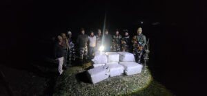 कुर्साकांटा. एसएसबी 52 वीं बीओपी लैलोखर व कुआड़ी थाना पुलिस की संयुक्त कार्रवाई में शुक्रवार की देर रात नेपाल की तरफ से तस्करी का गांजा लेकर भारतीय क्षेत्र में आ रहे तस्करों के विरुद्ध की गयी कार्रवाई में 278 किलो गांजा बरामद किया गया. हालांकि अंधेरे का लाभ उठाते हुए तस्कर भाग गया. जानकारी देते एसएसबी 52 वीं के सहायक कमांडेंट मोहित भार्गव के निर्देश पर निरीक्षक सामान्य विश्वनाथ घोष के नेतृत्व में नाकेबंदी की गयी. रात के लगभग 10:15 बजे भारत नेपाल पीलर संख्या 169 से 169(1) के बीच ड्यूटी पर तैनात नाका पार्टी को संदिग्ध गतिविधि का आभास हुआ. इसी दौरान कुत्ते के भौंकने की आवाज सुनकर जवान मौके की ओर बढ़े तो देखा कि नेपाल तरफ से कुछ लोग कुछ सामान लेकर भारतीय क्षेत्र में आ रहा है. जवानों को देखते हीं तस्कर सामान फेंककर अंधेरा व घना कोहरा का लाभ उठाते हुए नेपाल की ओर फरार हो गया. नाका पार्टी जब उक्त स्थल की तलाशी ली तो पीलर संख्या 169 (1) के पूर्व लगभग 800 मीटर नो मेंस लैंड के पास भारतीय सीमा के अंदर 09 सफेद प्लास्टिक बोरे में बरामद किया गया. जांच में बोरे के अंदर गांजा जैसा पदार्थ पाया गया. ड्रग डिटेक्शन किट से जांच करने पर गांजा प्रमाणित हुआ. वहीं बरामद गांजा 278 किलोग्राम के विरुद्ध कागजी प्रक्रिया पूर्ण करते हुए अग्रेत्तर कार्रवाई को लेकर कुआड़ी थाना को सुपुर्द कर दिया गया. कार्रवाई में कुआड़ी थानाध्यक्ष प्रेमप्रकाश शर्मा, एसएसबी के निरीक्षक विश्वनाथ घोष, उप निरीक्षक हिमांशु रस्तोगी, मुख्य आरक्षी कृष्ण लकड़ा, पूरन लाल, आरक्षी रोहित कुमार व मिथुन कुमार शामिल रहे.