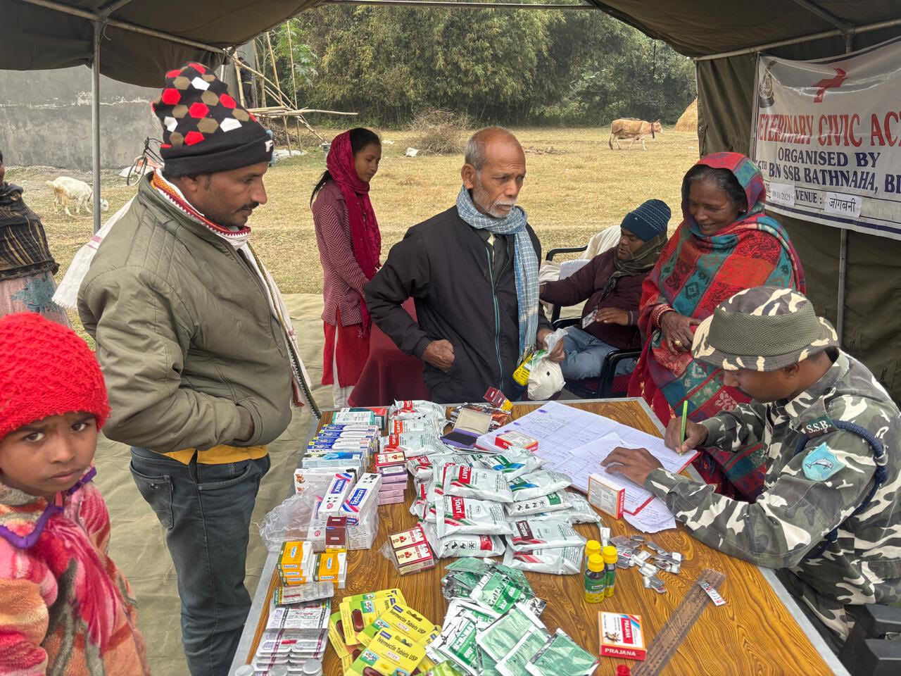 56 वीं वाहिनी सशस्त्र सीमा बल के कमांडेंट सुरेंद्र विक्रम के दिशा निर्देशन पर बुधवार को बाह्य सीमा चौकी सी समवाय के कार्यक्षेत्र स्थित जोगबनी में निःशुल्क पशु चिकित्सा शिविर का आयोजन किया गया. पशु चिकित्सा शिविर में डॉ रामशरण राम टीवीओ (पशु चिकित्सालय) फारबिसगंज द्वारा सीमावर्ती पशुओं की निःशुल्क जांच की गयी. उनके परामर्श के अनुसार 56 वीं वाहिनी के पशु चिकित्सा शाखा के कर्मी द्वारा स्थानीय पशुपालकों को मुफ्त दवाइयों का वितरण किया गया. इस पशु चिकित्सा शिविर में 15 सीमावर्ती पशुपालक के 61 पशु लाभान्वित हुए. सशस्त्र सीमा बल द्वारा संचालित इस कार्यक्रम की स्थानीय ग्रामीणों द्वारा काफी सराहना की. इस मौके पर स्थानीय ग्रामीण व 56 वीं वाहिनी के कर्मी मौजूद थे.———-