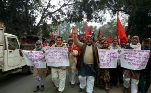 अररिया में दो नेताओं की हुयी हत्या के विरोध में सड़क पर उतरे भाकपा (माले) कार्यकर्ता