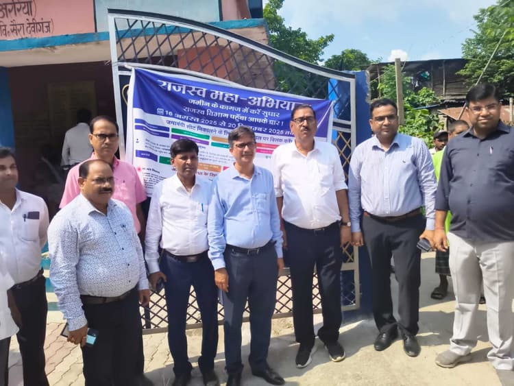 नरपतगंज. राजस्व विभाग ने 16 अगस्त से 20 सितंबर 2025 तक जारी राजस्व महाअभियान का शुभारंभ शुक्रवार को किया. पहले दिन विभाग के निदेशक भू-अर्जन कमलेश सिंह ने प्रखंड क्षेत्र के मध्य विद्यालय खैरा पहुंचकर महा अभियान शिविर का निरीक्षण किया. निरीक्षण के दौरान जांच पड़ताल के बाद मौजूद कर्मी को कई तरह के निर्देश दिये. कहा कि शिविर के दौरान लापरवाही व कोताही बरतने वाले कर्मी को चिह्नित कर कार्रवाई की जायेगी. वंही इस अभियान को सफल बनाने में रैयतों व जनप्रतिनिधियों से भी सहयोग करने की बात कही. मालूम हो कि राजस्व विभाग के द्वारा जमीन से संबंधित सुधार राजस्व विभाग पहुंचा आपके द्वार कार्यक्रम के तहत 16 अगस्त 2025 से 20 सितंबर 2025 तक राजस्व महाअभियान का आयोजन किया गया. जिसमें बिहार सरकार के राजस्व व भूमि सुधार विभाग द्वारा आपकी जमीन के रिकॉर्ड अशुद्धियों के सुधार में तेजी लाने के लिए एक विशेष राजस्व महाअभियान का आयोजन किया जा रहा है. इस अभियान का मुख्य उद्देश्य आपके घर पंचायत तक पहुंच कर आपके भूमि संबंधी दस्तावेजों की अशुद्धियों का सुधार करना है. जिसको लेकर 16 अगस्त से 15 सितंबर तक विभाग द्वारा गठित दल के द्वारा घर पर पहुंचकर जमाबंदी पंजी की प्रति व जो आपको आवश्यकता हो वह आवेदन प्रपत्र वितरण टीम के द्वारा करेगी. वहीं 19 अगस्त से 20 सितंबर तक प्रत्येक पंचायत सरकार भवन या पंचायत के अन्य सरकारी भवन में हल्का वार विशेष शिविर लगाये जायेंगे.