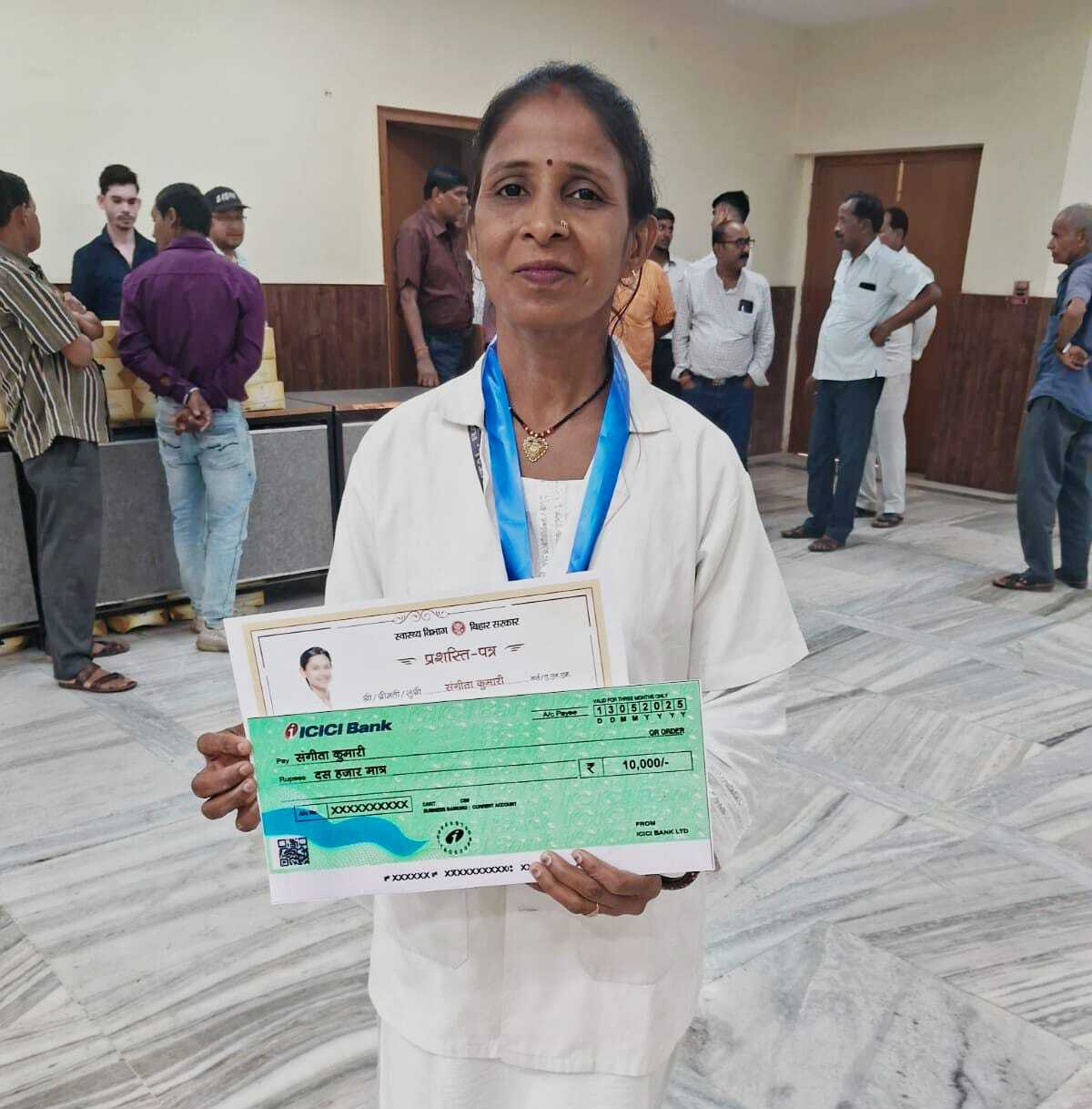 15-प्रतिनिधि, परवाहा रानीगंज प्रखंड क्षेत्र के प्राथमिक उप स्वास्थ्य केंद्र जगता खरसाही में पदस्थापित एएनएम संगीता कुमारी को राज्य स्वास्थ्य समिति द्वारा अनुकरणीय स्वास्थ्य सेवा भाव,कठिन परिस्थितियों में कार्य करने की क्षमता, मरीजों के प्रति समर्पण, सम्मान टीकाकरण, मातृ व शिशु स्वास्थ्य सेवा के साथ – साथ अपनी जिम्मेदारियों के सफलतापूर्वक निर्वहन करने के लिए उन्हें फ्लोरेंस नाइटेंगल नर्स अवॉर्ड 2025 से सम्मानित किया गया है. इस पुरस्कार में एएनएम को प्रशस्ति पत्र व दस हजार रुपये का चेक सूबे के स्वास्थ्य मंत्री मंगल पांडे के हाथों दिया गया है. राज्य स्वास्थ्य समिति के द्वारा एएनएम संगीता कुमारी को सम्मानित किये जाने से रानीगंज के स्वास्थ्य कर्मियों में काफी खुशी है. वहीं रानीगंज रेफरल अस्पताल प्रभारी डॉ रोहित कुमार झा, अस्पताल प्रबंधक रवि राज, डॉ राजू कुमार, डॉ अरविंद कुमार आदि ने बधाई दिया है.