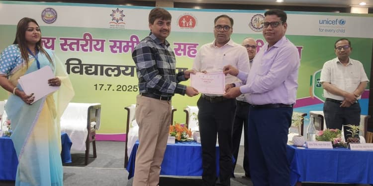 कमर आलम, अररिया गुरुवार को पटना में आयोजित राज्य स्तरीय उन्मुखीकरण सह समीक्षा बैठक में मध्याह्न भोजन योजना में तिथि भोजन के बेहतर व सुचारु रूप से आयोजन को लेकर अररिया के मध्याह्न भोजन योजना के जिला कार्यक्रम पदाधिकारी रोहित कुमार चौरसिया व जिला समन्वयक सरोज कुमार तिवारी को विनायक मिश्र निदेशक मध्याह्न भोजन पटना बिहार ने सम्मानित किया. यह सम्मान राज्य के विद्यालयों में तिथि भोजन आयोजन में अररिया के बेहतर प्रदर्शन कि लेकर दिया गया है. जिला को प्रथम स्थान प्राप्त करने के लिये डीपीओ व डीपीएम दोनों को सम्मानित किया गया. पटना के चाणक्य होटल में आयोजित इस बैठक में बिहार राज्य के सभी जिला के मध्याह्न भोजन के डीपीओ व डीपीएम मौजूद थे. इसके अलावा स्वास्थ्य व यूनिसेफ के राज्य स्तरीय पदाधिकारी मौजूद थे. अररिया ने तिथि भोजन के आयोजन में राज्य के अन्य जिला की अपेक्षा सर्वाधिक विद्यालयों में आयोजन किया. जिसके लिए अररिया को यह सम्मान मिला है. अररिया के जिला शिक्षा पदाधिकारी संजय कुमार ने इस बेहतरीन उपलब्धि व सम्मान के लिये जिला के सभी प्रधानाध्यापक, जिला व प्रखंड स्तर पर मध्याह्न भोजन की पूरी टीम को बधाई दी है. जिनके कारण अररिया का नाम पूरे बिहार में रौशन हुआ है. सरोज कुमार तिवारी द्वारा विद्यालयों में पोषण वाटिका निर्माण को विस्तारित करने व विद्यालयों में अध्ययनरत छात्र-छात्राओं के लिये नियमित एलबेंडाजोल व आइएफए की गोली की सेवन पर जोर देते हुए आंकड़े के विभागीय एमआइएस में प्रविष्ट करने के लिए सभी प्रखंड साधन सेवी को निर्देशित किया.34