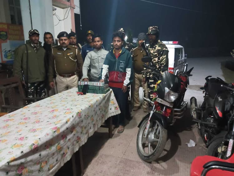 फोटो-3- पुलिस गिरफ्त में आरोपी व नशीली टैबलेट. प्रतिनिधि, नरपतगंज घूरना पुलिस व एसएसबी जवानों ने रविवार की रात गुप्त सूचना के आधार पर पथराहा पंचायत अंतर्गत हरिपुर स्थित सुरसर नदी पुल के समीप दो बाइक सवार तस्कर से 5070 पीस प्रतिबंधित नशीले टैबलेट के साथ गिरफ्तार कर लिया. गिरफ्तार तस्कर में बसमतिया थाना क्षेत्र के वार्ड संख्या छह निवासी सूरज कुमार पासवान पिता केशव पासवान व पथराहा पंचायत के नरहौआ वार्ड संख्या चार निवासी मो इकबाल पिता अलाउद्दीन बताया जा रहा है. घूरना थानाध्यक्ष संजय कुमार यादव ने बताया कि गुप्त सूचना मिली थी कि अचरा होते हुए सुरसर से नरहौआ होकर बड़ी मात्रा में नशीली टैबलेट मंगाकर तस्करी के माध्यम से पड़ोसी देश नेपाल में भेजने का काम करता है. जिसके आलोक में पुलिस टीम व एसएसबी की संयुक्त कार्रवाई में नशीली टेबलेट के साथ दो तस्कर को गिरफ्तार कर लिया गया. वहीं थानाध्यक्ष ने बताया कि दोनों गिरफ्तार तस्कर से आवश्यक पूछताछ के बाद न्यायिक हिरासत में भेज दिया गया. ———– भूमि विवाद में मारपीट, प्राथमिकी दर्ज पलासी. जोकीहाट थाना क्षेत्र क्षेत्र बाघमारा गांव के मो अजहर हुसैन ने भूमि विवाद में मारपीट को लेकर पलासी थाना में 11 लोगों के विरुद्ध प्राथमिकी दर्ज कराया है. जिसमें सलाम, खाजा उर्फ जाफर, नूरजहां,सरवरी, शहजादी, बीबी आर्शी, मुन्तजिर, मो बाबुल, बीवी रौशनी, नवाजिश, आबिद गांव सुखसैना थाना पलासी को नामजद अभियुक्त बनाया गया है. थानाध्यक्ष ने बताया कि पीड़ित के आवेदन पर मामला दर्ज कर लिया गया है. पुलिस मामले की जांच कर रही है. अग्रतर कार्रवाई की जायेगी. ————- आपसी विवाद में मारपीट, प्राथमिकी दर्ज पलासी. प्रखंड क्षेत्र के बानसर गांव निवासी समबरी खातून ने आपसी विवाद में मारपीट व छिनतई की आरोप लगाते हुए पलासी थाना में चार लोगों के विरुद्ध प्राथमिकी दर्ज कराया है. जिसमें दिलावर खां, साबीर खां, इश्तियाक खां, राजु खां को नामजद अभियुक्त बनाया गया है. थानाध्यक्ष ने बताया कि पीड़िता के आवेदन पर मामला दर्ज कर लिया गया है. पुलिस मामले की जांच कर दोषी के विरुद्ध सख्त कार्रवाई की जायेगी.