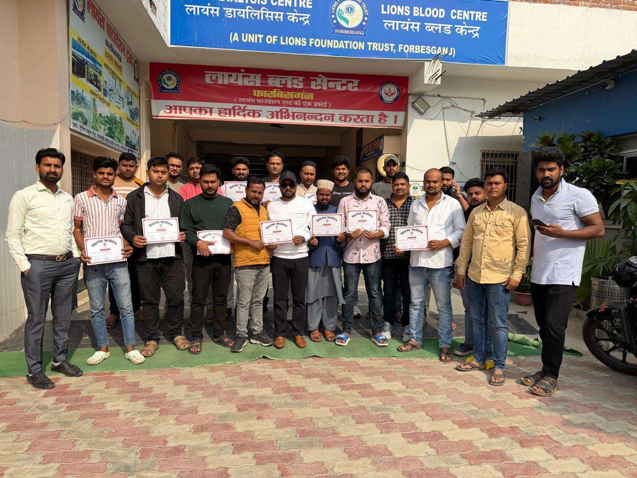 फारबिसगंज. समाज सेवा के क्षेत्र में अग्रणी युवाओं ने सामाजिक संगठन खिदमत फाउंडेशन की स्थापना रविवार को की. इस मौके पर रक्तदान शिविर का आयोजन लायंस नेत्रालय के लायंस ब्लड सेंटर में अध्यक्ष शौकत अंसारी के नेतृत्व में संपन्न हुआ. जिसमें 26 युवाओं ने अपना रक्त फाउंडेशन के माध्यम से दान दिया. इसके संदर्भ में सदस्य इरशाद सिद्दीकी ने बताया कि आज रक्तदान शिविर में शहर व ग्रामीण क्षेत्र के दर्जनों युवा रक्तदान के लिए एकत्रित हुए. जिनमें से विभिन्न रक्त वर्ग के 26 युवाओं के रक्त लिए गये. खास बात यह रही कि पहली बार रक्तदान करने वाले युवा काफी उत्साहित दिखे. सदस्य राशिद जुनैद ने बताया कि खिदमत फाउंडेशन की नींव समाज सेवा के उद्देश्य से की गयी है. रक्तदान शिविर से संगठन का शुभारंभ हुआ है. भविष्य में फाउंडेशन बुजुर्गों, महिलाओं, निर्धनों, लाचारों के उत्थान के लिए कई स्तर पर कार्य करने के लिए प्रतिबद्ध है.