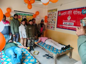 :34-प्रतिनिधि, बथनाहा बथनाहा क्षेत्र के श्यामनगर स्थित वार्ड संख्या 14 में परशुराम सिंह की 32वीं पुण्यतिथि पर रक्तदान शिविर का आयोजन किया गया. शिविर का उद्घाटन पुलिस अधीक्षक अंजनी कुमार ने फीता काटकर किया. इस अवसर पर भंगही पंचायत के मुखिया मनोरंजन मंडल, ब्रजभूषण सिंह, नागेश्वर यादव, कमांडेंट सुरेंद्र विक्रम, एचके शिंदे, वेंगसुन कांगखू, फुनचूक लेपचा व एसएसबी के पदाधिकारी मौजूद रहे. इस कार्यक्रम में युवा, महिलाएं के साथ एसएसबी के जवानों ने भी बढ़-चढ़कर हिस्सा लिया. कार्यक्रम को सफल बनाने में स्व परशुराम सिंह के परिवार से दुर्गा देवी, जितेंद्र सिंह बबलू, धर्मेंद्र सिंह, राजीव सिंह, वंदना सिंह, ममता सिंह, राखी सिंह, खत्री परिवार के इंद्रजीत सिंह, अनिकेत सिंह गोलू, राजा सिंह, युवराज सिंह, आशु सिंह, आयुष सिंह, शौर्य सिंह, आनंद सिंह, बसंत सिंह के साथ-साथ टीम सेवक बंधु के नीरज भगत, तपेश शाह आदि शामिल थे. यह कार्यक्रम रक्तदान के महत्व को बढ़ावा देने व जरूरतमंद लोगों की मदद करने के लिए आयोजित किया गया था. इस अवसर पर मानव कल्याण हमारा मिशन के राष्ट्रीय अध्यक्ष राखी सिंह ने सभी रक्तदाताओं के उज्ज्वल भविष्य की कामना करते हुए कहा कि रक्तदान महादान है. सभी को इस प्रकार के आयोजन में आगे बढ़ कर हिस्सा लेना चाहिए.