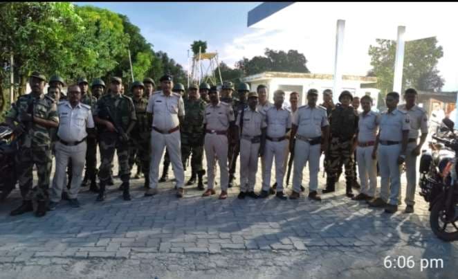 परवाहा. बौंसी पुलिस ने सोमवार की देर संध्या थाना क्षेत्र के गुणवंती, बसैटी, फरकिया सहित अन्य गांवों में आगामी विधानसभा चुनाव शांतिपूर्ण माहौल में संपन्न करवाने को लेकर थानाध्यक्ष कुंदन कुमार के नेतृत्व में फ्लैग मार्च किया. फ्लैग मार्च में दारोगा कृष्ण कुमार यादव, नेयाज अहमद पुलिस पदाधिकारी सहित भारी संख्या में केंद्रीय बल के जवान शामिल थे.