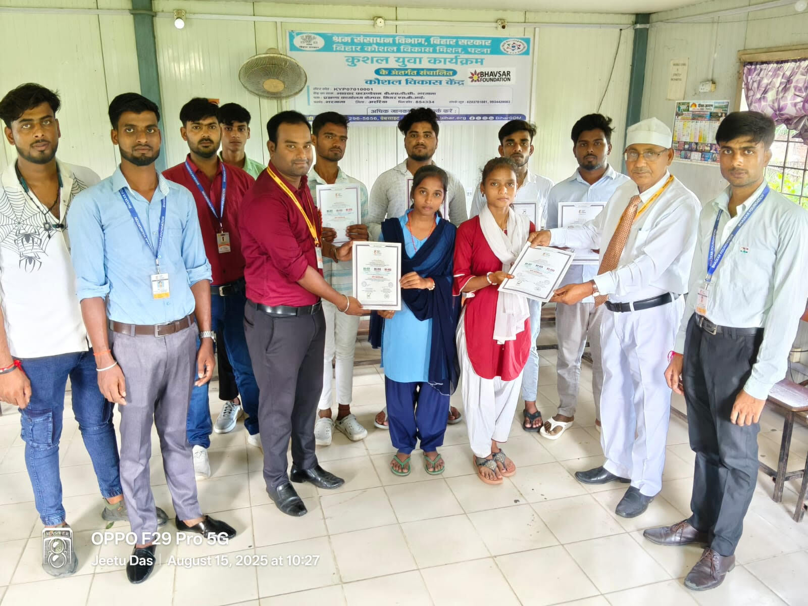 भरगामा. बिहार सरकार के महत्वाकांक्षी सात निश्चय कार्यक्रम के तहत आर्थिक हल, युवाओं को बल योजना को ग्रामीण युवाओं तक पहुंचाने के उद्देश्य से भावसर फाउंडेशन द्वारा प्रखंड कार्यालय भरगामा में वर्ष 2016 से कुशल युवा कार्यक्रम का संचालन किया जा रहा है. इस कार्यक्रम के अंतर्गत 10वीं पास छात्र-छात्राओं को निःशुल्क कंप्यूटर प्रशिक्षण, भाषा कौशल (लैंग्वेज स्किल) व सॉफ्ट स्किल के तीन माह का पाठ्यक्रम कराया जाता है. प्रशिक्षण के बाद उन्हें प्रमाण पत्र भी प्रदान किया जाता है. जिससे रोजगार व स्व-रोजगार के अवसर बढ़ते हैं. वहीं एसके मिश्रा व अभिजीत कुमार ने संयुक्त रूप से प्रशिक्षण प्राप्त छात्रों को प्रमाण पत्र दिया गया. इस मौके पर मनीष कुमार, सुमन कुमार, नीतिश कुमार, मंटू कुमार, राकेश कुमार, प्रेम कुमार, विशाल कुमार, खुशबू कुमारी, मौसम कुमारी सहित कई लोग मौजूद थे.
