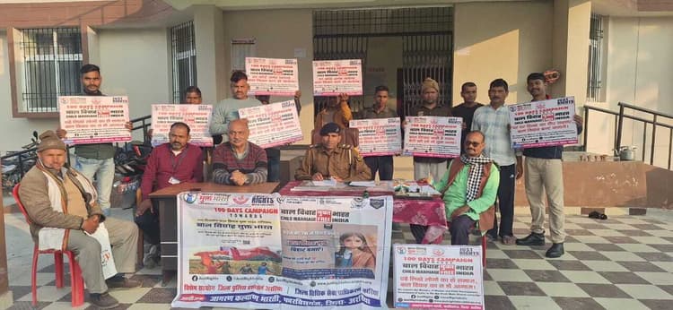 नरपतगंज. प्रखंड क्षेत्र के भारत-नेपाल सीमा से सटे बसमतिया, घूरना, फुलकाहा थाना में रविवार को जस्ट राइट फॉर चिल्ड्रन के सहयोग से एक्सेस टू जस्टिस (न्याय तक पहुंच) कार्यक्रम के अंतर्गत जिला पुलिस प्रशासन अररिया, जिला विधिक सेवा प्राधिकरण अररिया व जागरण कल्याण भारती फारबिसगंज के संयुक्त तत्वावधान में बसमतिया थाना में थानाध्यक्ष सुनील कुमार, घूरना थाना में थानाध्यक्ष मुकेश कुमार, फुलकाहा थाना में थानाध्यक्ष विकास कुमार मौर्य की अध्यक्षता में 100 दिवसीय बाल विवाह मुक्त भारत अभियान के तहत बैठक का आयोजन किया गया. कार्यक्रम का संचालन संजय कुमार अध्यक्ष जागरण कल्याण भारती ने किया. बाल विवाह मुक्त, मानव तस्करी मुक्त, बाल श्रम मुक्त व बाल यौन शोषण मुक्त अररिया जिला बनाने के लिए जिसमें थाना बाल कल्याण पुलिस पदाधिकारी, अन्य पुलिस पदाधिकारी के साथ जिला विधिक सेवा प्राधिकरण अररिया के पीएलवी (अधिकार मित्र) विनय कुमार ठाकुर, जागरण कल्याण भारती के डीसी दीपक कुमार पासवान व सीएसडब्ल्यू अंकुश कुमार यादव, सभी जनप्रतिनिधियों, धर्मगुरु गुरु, टेंट वाला, बाजा वाला व अन्य लोगों को बाल विवाह से होने वाले दुष्परिणामों के बारे में समझाया गया. सरकार द्वारा चलाई जा रही विभिन्न प्रकार की सरकारी योजनाओं के बारे जानकारी दी गयी.