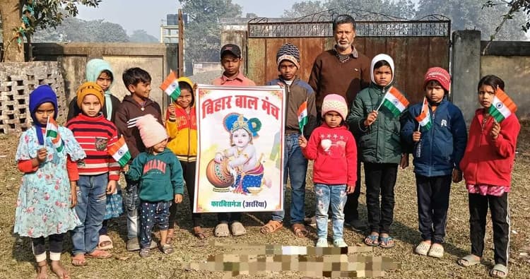 फारबिसगंज. स्थानीय सरकारी व गैर सरकारी विद्यालयों में पढ़ने वाले स्कूली बच्चों की संस्था बिहार बाल मंच द्वारा शहर के प्रोफेसर कॉलोनी के समीप स्थित पीडब्लूडी परिसर में शनिवार को स्कूली बच्चों के लिए सांस्कृतिक कार्यक्रम आयोजित किया गया. कार्यक्रम में उपस्थित बच्चों ने राष्ट्रगान वंदे मातरम व बाल गीतों के अलावा राष्ट्रीयता से ओत-प्रोत कविताओं का पाठ कर मौजूद लोगों को मंत्रमुग्ध कर दिया. इस मौके पर कार्यक्रम में भाग लेने वाले स्कूली बच्चों को संस्था के संस्थापक विनोद कुमार तिवारी के द्वारा उपहार शुभकामनाओं के साथ प्रदान किया गया.