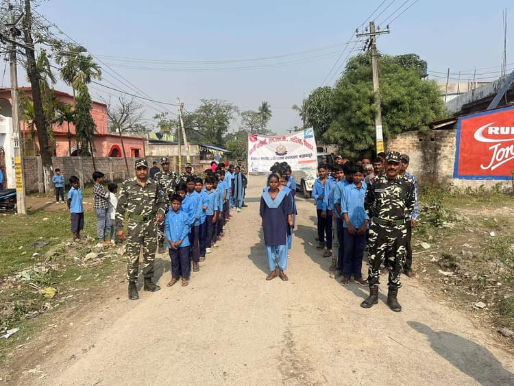 कुर्साकांटा. एसएसबी 52वीं वाहिनी के कमाडेंट महेंद्र प्रताप के निर्देश पर सीमावर्ती प्रखंड क्षेत्र के सभी कंपनी व बाह्य सीमा चौकियों में स्वच्छता पखवारा मनाया जा रहा है. इस क्रम में एसएसबी कंपनी कुआड़ी द्वारा मवि कुआड़ी से जागरूकता रैली निकाली गयी. जागरूकता रैली में एसएसबी जवानों के अलावा विद्यालय परिवार के सभी शिक्षक व स्कूली छात्रों ने बढ़-चढ़ कर हिस्सा लिया. स्वच्छता रैली का मुख्य उद्देश्य स्वच्छ भारत, स्वच्छ समाज, स्वच्छ गांव का संदेश देना है. यह रैली मध्य विद्यालय कुआड़ी, सिकटी मोड़, मुख्य बाजार, कुआड़ी, इंडिया एटीएम, ग्रामीण बैंक, सत्संग मंदिर, कुआड़ी पैक्स, इंडो-नेपाल बॉर्डर रोड होते हुए विद्यालय परिसर में इसका समापन किया गया.