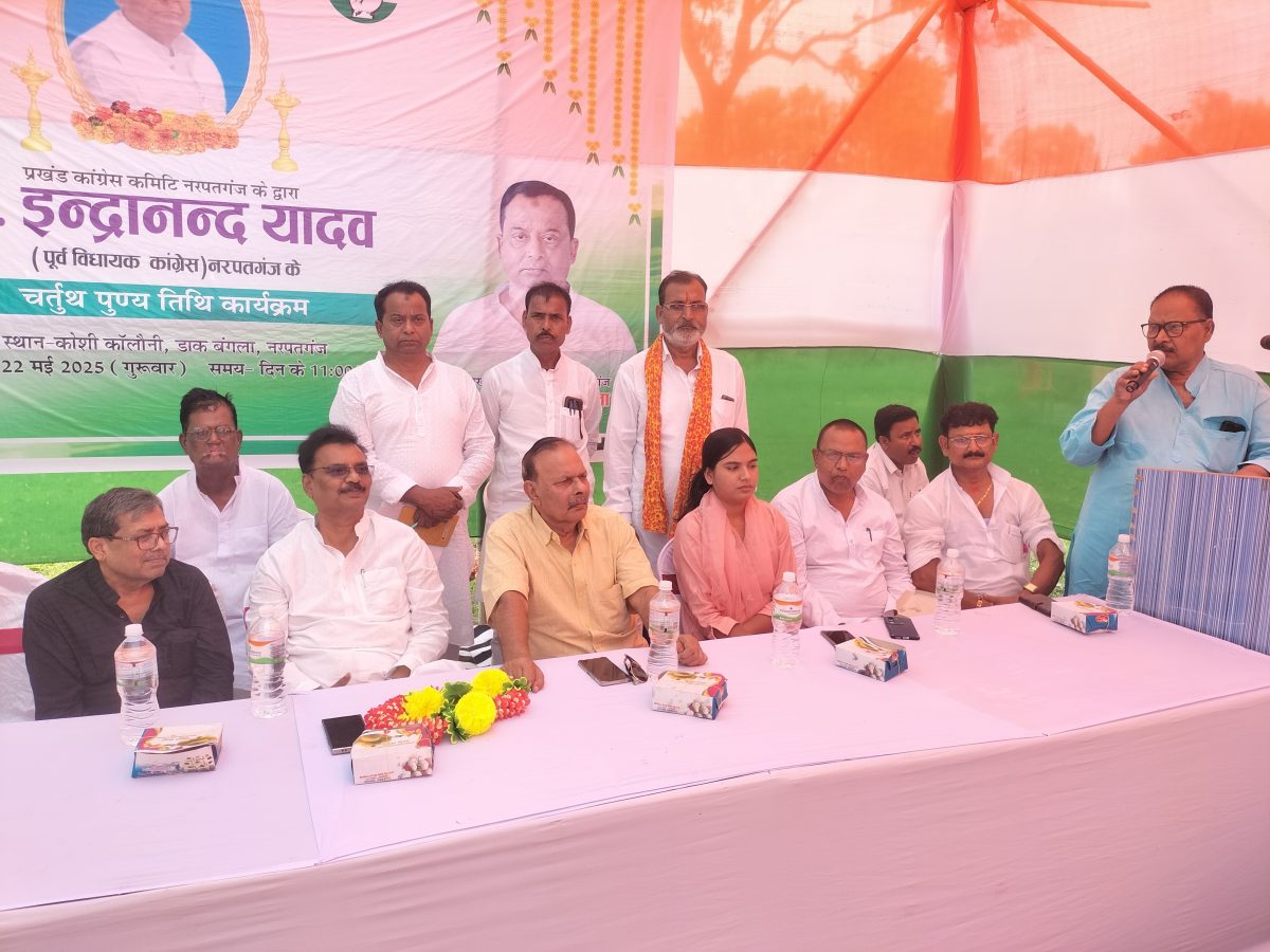 3-प्रतिनिधि, नरपतगंज नरपतगंज कोसी कॉलोनी स्थित डाक बंगला में गुरुवार को नरपतगंज के पूर्व विधायक इंद्रानंद यादव की चौथी पुण्यतिथि पर कांग्रेस नेताओं व कार्यकर्ताओं ने समारोह आयोजित कर उनके तेल चित्र पर पुष्प अर्पित कर श्रद्धांजलि दी. इस मौके पर उनके जीवन वृतांत पर चर्चा करते हुए पूर्व विधायक जाकिर अनवर ने कहा कि 1985 से 1990 तक नरपतगंज विधानसभा का प्रतिनिधित्व किया. इस दौरान उन्होंने कई सराहनीय कार्य किया. हमेशा समाज के अंतिम पंक्ति के लोगों के विकास के लिए तत्पर रहे. वहीं मौके पर सभी वक्ताओं ने उनके जीवनी पर विस्तृत चर्चा करते हुए उनके कार्यों की सराहना की. कार्यक्रम का आयोजन मनोज कुमार पप्पू व अध्यक्षता प्रखंड अध्यक्ष नाश्तर आजाद उर्फ मुन्ना ने किया. मौके पर पूर्व विधायक जाकिर अनवर, कांग्रेस नेता मो हारून, मुख्य पार्षद सन्नू कुमारी, नश्तर आजाद उर्फ मुन्ना, पूर्व मुखिया अनंत राय, विश्व मोहन यादव, इंद्रानंद पासवान, दिलीप पासवान, मो हारुन, अंबरीश राहुल, निरंजन सिंह, नरेश पासवान, आलोक मेहता, रघुनाथ शर्मा, बबलू, शैलेंद्र कुमार राय, मंटू यादव सहित बड़ी संख्या में कांग्रेस कार्यकर्ता व गणमान्य लोग मौजूद थे.
