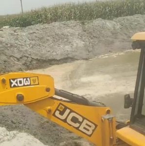 मजदूरों के बदले जेसीबी से हो रहा पोखर निर्माण