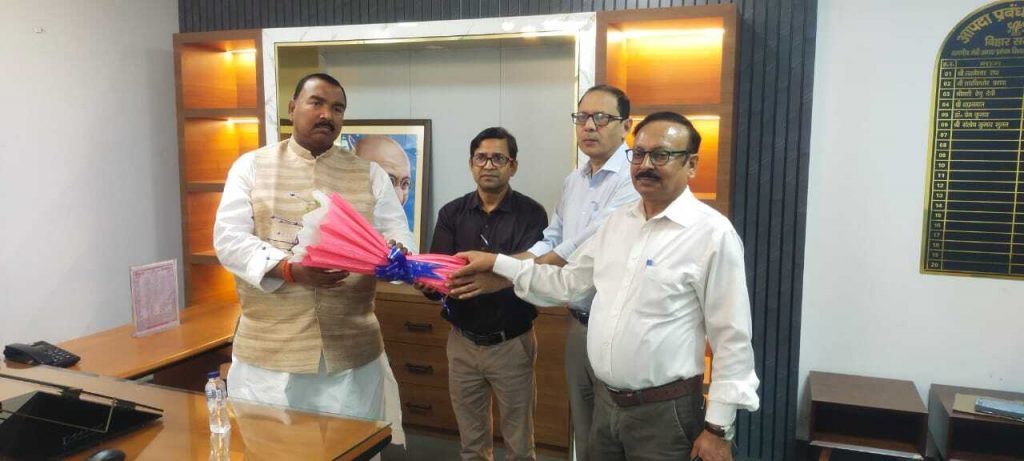 विभागीय सचिव ने बुके भेंटकर किया स्वागत