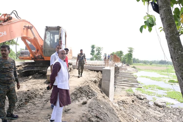 फारबिसगंज. फारबिसगंज विधानसभा क्षेत्र के मरिया परमान नदी पर कोठीहाट चौक से डोमरा बांध स्थिति किसान चौक पथ में निर्माणाधीन उच्च स्तरीय पुल का विधायक विद्यासागर केसरी ने निरीक्षण किया. इस मौके पर निर्माण कार्य की गुणवत्ता मानकों पर ध्यान देने की बात उन्होंने संवेदक से कही. उन्होंने कहा बरसात से पूर्व गुणवत्तापूर्ण कार्य संपन्न करने का दिश-निर्देश दिया. इस मौके पर उन्होंने कहा फारबिसगंज प्रखंड के हलहलिया पंचायत में लहसुनगंज में पनार नदी पर भी प्रधानमंत्री ग्राम सड़क योजना के तहत लगभग 775 लाख की लागत से उच्च स्तरीय पुल का निर्माण कार्य चल रहा है. इस पुल के बन जाने से प्रखंड के पूर्वी इलाके के लोगों को जिला मुख्यालय, प्रखंड मुख्यालय आने जाने में काफी सुविधा होगी. खास कर के खवासपुर रेलवे स्टेशन से एनएच 27 मानिकपुर में सीधा संपर्क हो जायेगा. उन्होंने कहा इस प्रकार के दर्जनों पुल-पुलिया का निर्माण कार्य चल रहा है जिससे लोगों को आने वाले दिनों लाभ मिलेगा. 20