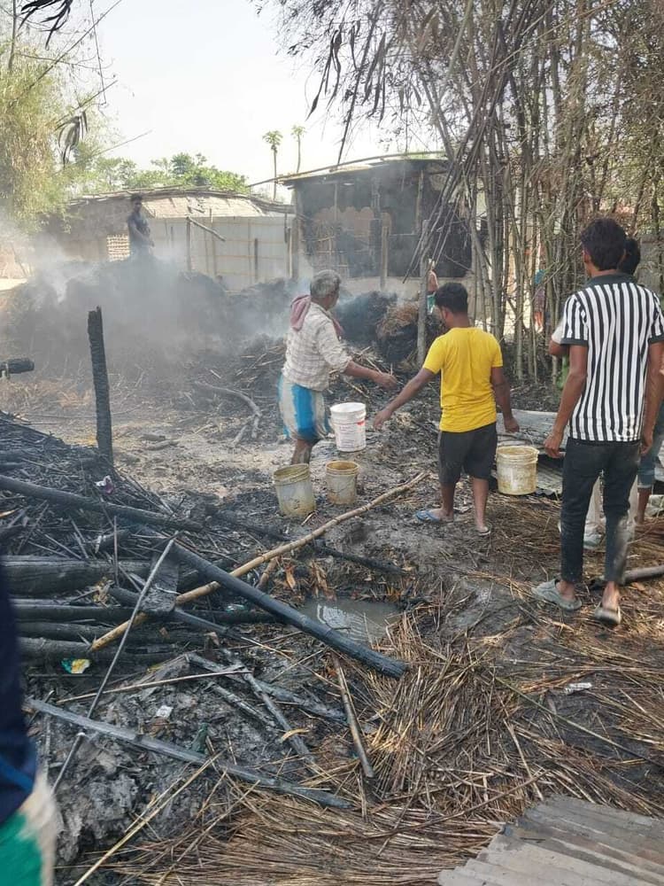 51-प्रतिनिधि, पलासी प्रखंड के डेहटी दक्षिण पंचायत के ककोडवा गांव में रविवार को हुई अग्लगी घटना में आठ घर जल गये. इस अग्लगी की घटना में लगभग चार लाख की संपत्ति जल गये. जानकारी अनुसार डेहटी दक्षिण पंचायत के ककोडवा गांव में रविवार को घूर से उठी चिंगारी ने देखते ही देखते आठ घरों को अपनी आगोश में ले लिया. इस घटना में घरेलू सामग्री अनाज कपड़ा बर्तन फर्नीचर, नकदी सहित करीब चार लाख की संपत्ति जल गये. पीड़ित परिवारों में फिरोजा, मो महमूद, नाजमीन, असद, मंजर, नैयर, जाफर शामिल हैं. हालांकि इस घटना में मो आबिद का दुकान भी क्षतिग्रस्त हो गया. पीड़ित मोसोमात फिरोजा ने बताया कि घर के बगल लगा घूर से उठीं आग की चिंगारी ने देखते ही देखते हम लोगों के घर को जला दिया. आग पर काबू पाने के लिए स्थानीय ग्रामीणों व अग्नि शमन वाहन को कड़ी मेहनत करनी पड़ी. सीओ सुशील कांत सिंह ने बताया कि स्थानीय कर्मचारी को घटनास्थल पर भेजा गया है. उन्होंने बताया कि सभी बीपीएल परिवार हैं. विधवा फिरोजा के घर में शादी के लिए रखी नकदी भी जल गयी. उन्होंने स्थानीय प्रशासन से पीड़ित परिवारों के लिये उचित मुआवजा की मांग की है.
