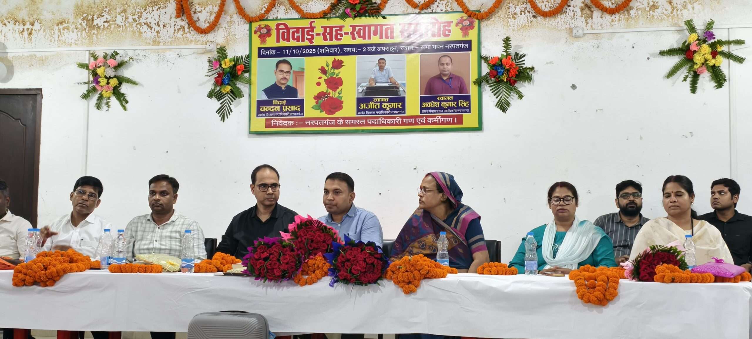 नरपतगंज. प्रखंड कार्यालय सभागार में सम्मान सह विदाई समारोह का आयोजन कर बीडीओ चंदन प्रसाद को विदाई दी गयी. वहीं नये बीडीओ अजीत कुमार को सम्मानित किया गया. मालूम हो कि बीडीओ चंदन प्रसाद अच्छे स्वभाव के मिलनसार व्यक्ति है. जो लगातार तीन वर्ष से पदस्थापित थे. उनके स्थानांतरण होने के बाद नरपतगंज में नए बीडीओ के रूप में अजीत कुमार ने पदभार ग्रहण किया. उसके बाद प्रखंड कार्यालय के कर्मी के द्वारा नरपतगंज मुख्यालय स्थित सभा भवन में विदाई सह सम्मान समारोह आयोजन कर चंदन प्रसाद को भव्य तरीके से विदाई दी गयी. इस मौके पर सीओ राम उद्गार चौपाल, रविंद्र कुमार, पंचायत राज पदाधिकारी अवधेश कुमार, बीडीओ फारबिसगंज संजय कुमार सहित अन्य प्रखंड कर्मी आदि मौजूद थे.