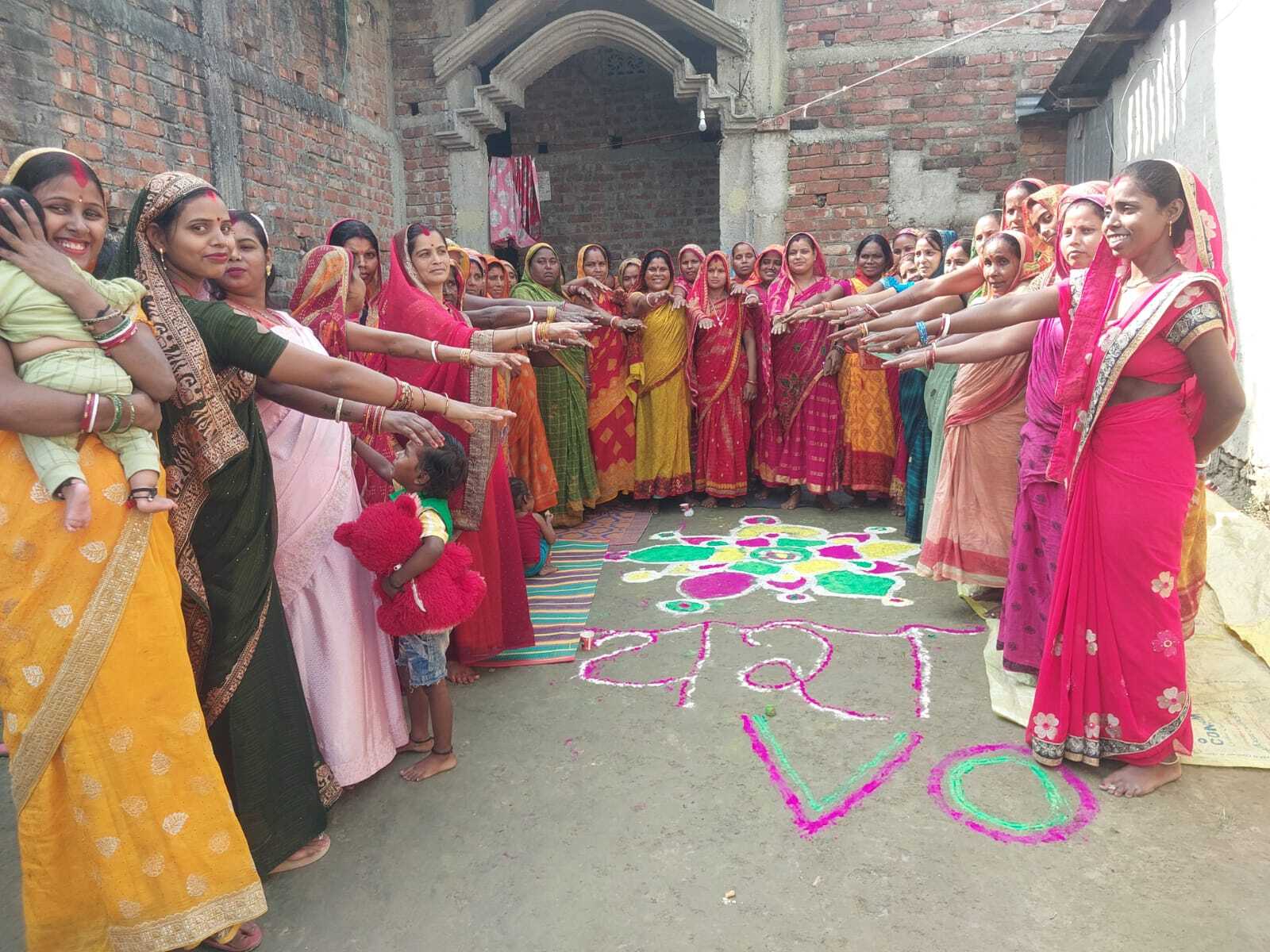 कुर्साकांटा. विधान सभा चुनाव में मतदाता अधिक से अधिक मताधिकार का प्रयोग करे को लेकर शनिवार को जीविका दीदियों ने चुनाव आयोग से मिले निर्देश के आलोक में ग्राम पंचायत सिकटिया के विभिन्न वार्डों में रंगोली बनाकर मतदाताओं को मतदान के दिन अपने अपने बूथों पर पहले मतदान फिर जलपान के तर्ज पर अधिक से अधिक मतदान करने की बात कही.
