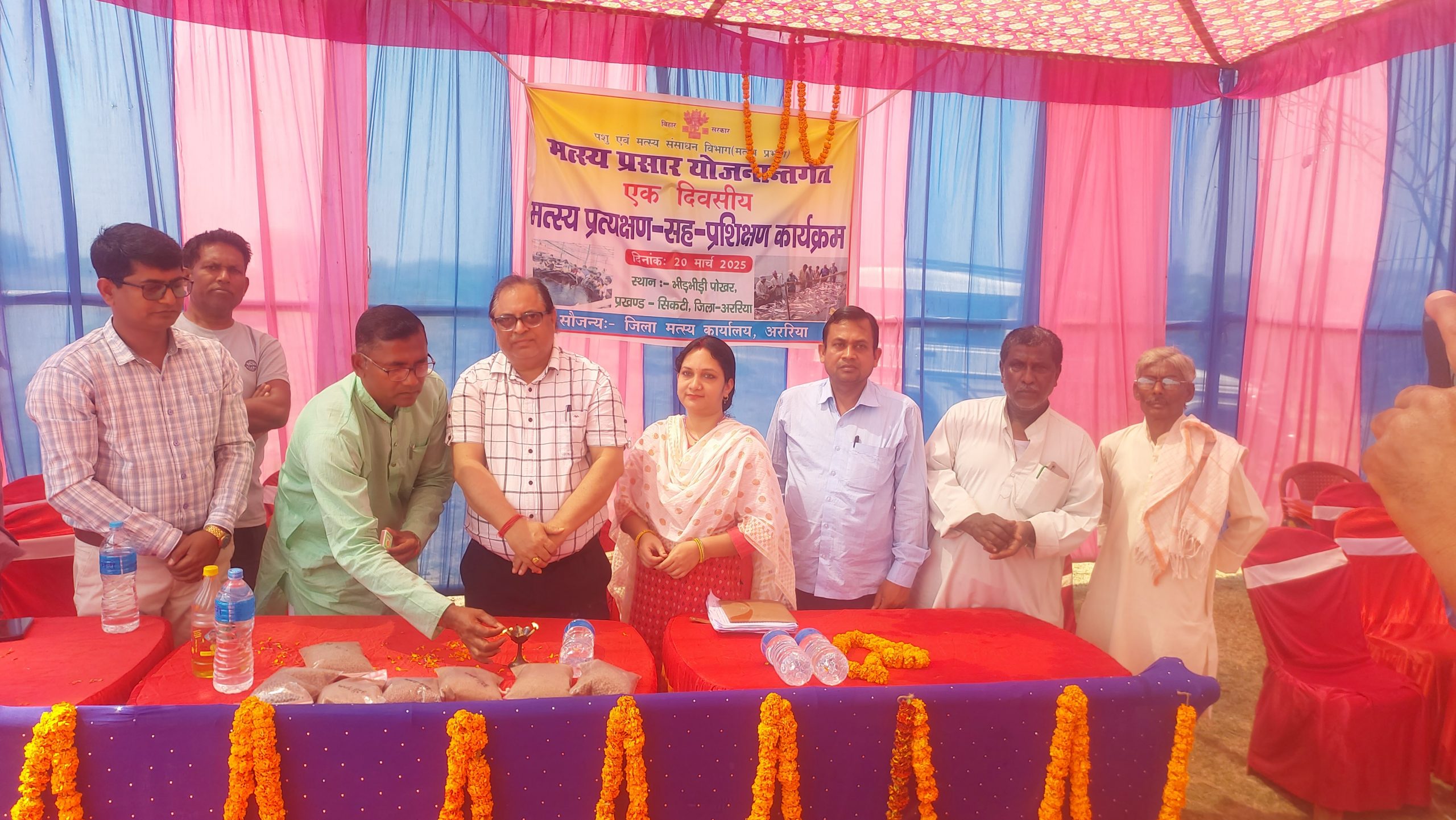 -6- प्रतिनिधि, सिकटी मत्स्य प्रसार योजना अंतर्गत एक दिवसीय मत्स्य प्रत्यक्षण सह प्रशिक्षण कार्यक्रम का आयोजन गुरुवार को प्रखंड के भिरभीरी पंचायत के पलासमणि गांव के पहाड़ा जलचर के समीप आयोजित की गयी. जिला मत्स्य पदाधिकारी नागेंद्र कुमार, मत्स्य विकास पदाधिकारी मंटू कुमार, कुमार सिंपल, मत्स्य प्रसार पदाधिकारी अवधेश प्रसाद, सहित मुख्य अतिथि हरिनारायण प्रामाणिक व विशेष अतिथि रंधीर कुमार व प्रखंड मत्स्यजीवि सहयोग समिति मंत्री कपिलदेव साहनी ने दीप प्रज्वलित कर कार्यक्रम का शुभारंभ किया. प्रशिक्षण के क्रम में मत्स्य प्रसार पदाधिकारी ने उपस्थित मत्स्य पालकों को विस्तार पूर्वक व सभी महत्वपूर्ण बिंदुओं पर गहन जानकारी दी. उन्होंने प्रशिक्षण के मुख्य उद्देश्य पर फोकस करते हुए कहा कि मत्स्य पालन को बेहतर मछली उत्पादन के साथ ही उसको सुलभ व सुगमतापूर्वक बाजार तक पहुंचाने व कम लागत में अधिक मुनाफा कैसे प्राप्त किया जा सके पर विस्तार से बताया. मत्स्य पलकों को सरकार द्वारा घोषित योजनाओं की जानकारी देते हुए कहा कि सर्वप्रथम भारत दर्शन कार्यक्रम के तहत उन्नत तकनीक की जानकारी के लिए मत्स्य पलकों को अपने जिले सहित दूसरे जिले व अपने राज्य के अलावे दूसरे राज्यों में भ्रमण कराया जाता है. जिससे मत्स्य पालन के आधुनिक तरीकों से अवगत कराया जाता है. इस मौके पर प्रखंड मत्स्यजीवी सहयोग समिति सिकटी अध्यक्ष शिवनाथ बहरदार, प्रबंध कार्यकारिणी सदस्य महावीर चौधरी, कृत्यानंद बहरदार,बबिता देवी, सुखसर देवी,रेखा देवी, यशोदा देवी, ललिता देवी, सहित दर्जनों की संख्या में मत्स्य पालक मौजूद थे.