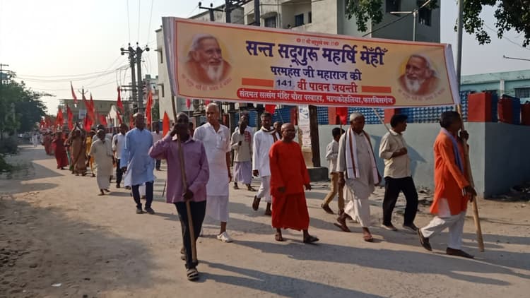 :2- प्रतिनिधि, फारबिसगंज संत सद्गुरु महर्षि मेंहीं परमहंस की जयंती समारोहपूर्वक रविवार को मनायी गयी. आयोजन समिति द्वारा प्रभात फेरी निकाली गयी. शोभायात्रा में गाजे-बाजे, बैंड पार्टी, चार पहिया वाहन व दो पहिया वाहन, सत्संग प्रेमी, बूढ़े-बच्चे, नौजवान, महिलाएं आदि शामिल हुए. इस मौके पर विनती, पाठ व आरती के साथ-साथ संत सदगुरु महर्षि मेंहीं महाराज की तस्वीर पर पुष्पांजलि का कार्यक्रम आयोजित किया गया. पुष्पांजलि होने के बाद प्रसाद वितरण का कार्यक्रम किया गया. भजन-कीर्तन, स्तुति विनती प्रवचन का आयोजन किया गया. महर्षि मेंहीं परमहंस जी महाराज के व्यक्तित्व व कृतित्व पर उपस्थित वक्ताओं द्वारा प्रकाश डाला गया. संत मेंहीं परमहंस जी महाराज 141 वर्ष से अधिक मानव शरीर में रहे. महर्षि मेंहीं परमहंस जी महाराज ने कुप्पाघाट भागलपुर आश्रम स्थित प्राचीन गुफा में वर्षों कठिन साधना कर मोक्ष परमात्मा को प्राप्त कर अपने मानव शरीर को सार्थक किया. इस शोभायात्रा में बुद्धिनाथ बाबा, मुनिलाल बाबा, हेमंत यादव, नरेश सिंह, कैलाश बाबा, महेंद्र साह, बबलू साह, चंदर शाह, अशोक साह, सीताराम साह, रघुनंदन मंडल, श्यामानंद यादव, उमेश यादव आदि सहित सैंकड़ों श्रद्धालु महिलाएं व पुरुष शामिल थ. सत्संग समापन के बाद सभी श्रद्धालुओं को भंडारे का आयोजन कर प्रसाद वितरण किया गया.