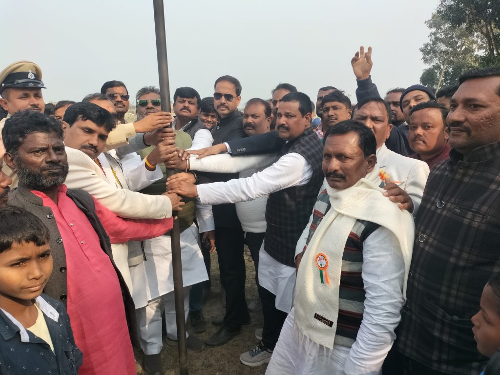 नरपतगंज प्रखंड मुख्यालय स्थित महर्षि मेंही किशोरी यादव महाविद्यालय के मैदान में क्रिकेट अकादमी को लेकर नींव रखी गई. जबकि इस दौरान पूर्व विधायक अनिल कुमार यादव, प्रखंड प्रमुख मनोज यादव, मुख्य पार्षद सन्नू कुमारी, प्राचार्य प्रवीण कुमार, थानाध्यक्ष कुमार विकास, कॉलेज के अध्यक्ष मनोज कुमार यादव के द्वारा संयुक्त रूप से निर्माण को लेकर नींव रखी. जबकि मौके पर राजद के प्रदेश महासचिव हसीब कौशर, वार्ड पार्षद गब्बर सिंह, निरंजन सिंह ,मोद मुन्ना, हसन राजा, मुजाहिद आलम, मो नइमुद्दीन ,अब्दुल माजीद, मो मोबीन, दीपक पासवान, इंद्रानंद पासवान, मो मोहसिन, मो खालिद, अब्दुल जब्बार, नबी हसन, मो ईशा, मो हाफीज , शकीरा, मो एजाज, प्रो दिनेश भगत, देवनारायण यादव, डॉ विपिन कुमार के अलावा दर्जनों की संख्या में स्थानीय लोग मौजूद थे. जानकारी देते वार्ड पार्षद प्रतिनिधि मो सैफुल्लाह ने बताया कि महर्षि मेंही किशोरी यादव महाविद्यालय परिसर में सौंदर्यीकरण व खेल को बढ़ावा देने के लिए नगर पंचायत से लाखों की लागत से क्रिकेट अकादमी का निर्माण कराया जाना है. जिसको लेकर लीव रखी गई है. जल्द ही कार्य पूरा कर लिया जायेगा. उदघाटन मैच में पोखरिया की टीम ने जमुआ की टीम पर 34 रनों से जीत दर्ज किया सिकटी. प्रखंड के कौआकोह पंचायत स्थित शिव मंदिर क्रिकेट क्लब पोठिया द्वारा आयोजित टी 20 क्रिकेट टूर्नामेंट का मंगलवार को जिला भाजपा अध्यक्ष आदित्य नारायण झा,जिला युवा मोर्चा अध्यक्ष आकाश राज, जिला प्रवक्ता अविनाश कुमार सिंह व बरदाहा भाजपा मंडल अध्यक्ष कुमोद झा द्वारा संयुक्त रूप से फीता काटकर टी20 क्रिकेट टूर्नामेंट का शुरूआत किया. उदघाटन मैच पोखरिया बनाम जमुआ के बीच खेला गया जिसमें पोखरिया की टीम ने 34 रन से जीत दर्ज किया. कार्यक्रम को सफल बनाने में कमेटी अध्यक्ष पंकज कुमार झा विकास झा मनोज मिश्रा अखिलेश झा शंभू नाथ मिश्रा सहित ग्रामीणों का महत्वपूर्ण योगदान रहा