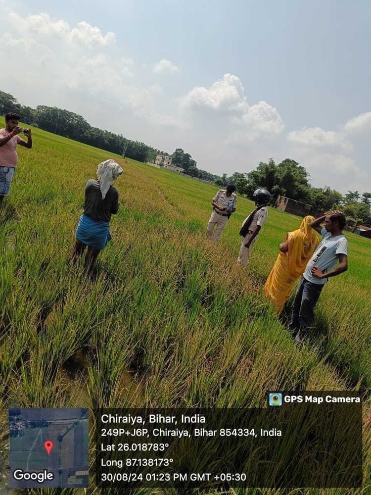 फोटो-2-खेत में जले धान फसल का जांच करते पुलिस व अन्य. प्रतिनिधि, भरगामा खेत किसान की रीढ़ होती है व फसल जीवन यापन का साधन. उसी फसल को जब कोई जहर डालकर जला दे तो किसान पर मुसीबतों का पहाड़ टूटना लाजमी है. मामला भरगामा थाना क्षेत्र के खुटहा बैजनाथपुर पंचायत के चरैया गांव वार्ड संख्या 09 का है. जहां दबंगों ने फसल सुखाने वाला जहर डालकर लगभग चार एकड़ धान की फसल को जला दियाि. घटना को लेकर किसान शंभु शरण की पत्नी रेणू देवी ने भरगामा थाना में आवेदन दिया है. आवेदन में बताया गांव के दबंग मुकेश पासवान पिता स्व पुरण पासवान, उपेंद्र पासवान पिता स्व रामाधीन पासवान, दिलीप पासवान पिता स्व परमानंद पासवान, महेंद्र पासवान पिता स्व कैलू पासवान व अन्य लोग ग्राम पूर्वी चरैया वार्ड संख्या 08 खूटहा बैजनाथपुर, थाना भरगामा निवासी ने मेरे धान के खेत में जहरीली दवाई का छिड़काव कर दिया. जिससे मेरी खड़ी फसल धान जल गयी. जिससे मुझे लगभग ढाई लाख रुपए का नुकसान हुआ है. आवेदन में आगे बताई की मुकेश पासवान व उपेंद्र पासवान आमजनों के बीच बोलता था कि धान तो रोप लिया. जब तक 10 कट्ठा जमीन या चार लाख रुपये नहीं देगा तो धान हम लोग उपजने नहीं देंगे. धान देखकर रास नहीं आया तो मौका देखकर दवाई छिड़काव कर चार बीघा धान को नष्ट कर दिया. इधर थानाध्यक्ष सह प्रशिक्षु डीएसपी संतोष कुमार पोद्दार ने बताया धान के फसल में दवाई का छिड़काव कर नष्ट करने का आवेदन प्राप्त हुआ है. तत्काल नष्ट फसल का सैंपल लेकर जांच के लिए जिला कृषि अधिकारी को भेजा जायेगा. जांच रिपोर्ट आने के बाद इस मामले में कार्रवाई की जायेगी. ———- भैंस की की चोरी, थाना में दिया आवेदन भरगामा. थाना क्षेत्र के महथावा बाजार वार्ड संख्या 06 में गुरुवार की मध्य रात्रि चोरों ने भूपी शर्मा के पुत्र झब्बर शर्मा की पांच भैंस चोरी कर ली. पशुपालक झब्बर शर्मा ने बताया गुरुवार रात के 10 बजे अपने सभी पशुओं को चारा खिलाकर खुद भी सोने चला गया. 12 बजे के आसपास चार लोग हथियार के साथ आये और मुझे हथियार का भय दिखाकर मेरे दरवाजे पर बंधी पांच दुधारू भैंस को पिकअप वाहन पर लादकर जाने लगा. मौका पाकर शोर मचाया तो सभी चोर भाग गये. जबकि जाते जाते एक चोर की पहचान कर ली. जो महथावा बाजार वार्ड संख्या आठ निवासी कलानंद शर्मा का पुत्र टेंपू शर्मा था. झब्बर शर्मा ने बताया भैंस ही मेरे जीविकोपार्जन का सहारा था. चोरी हुई भैंस की कीमत लगभग चार लाख के आसपास है. इधर चोरी की घटना को लेकर भरगामा थानाध्यक्ष सह प्रशिक्षु डीएसपी संतोष कुमार पोद्दार ने बताया पशु चोरी का आवेदन पशुपालक ने दिया है जांच कर कार्रवाई की जायेगी.