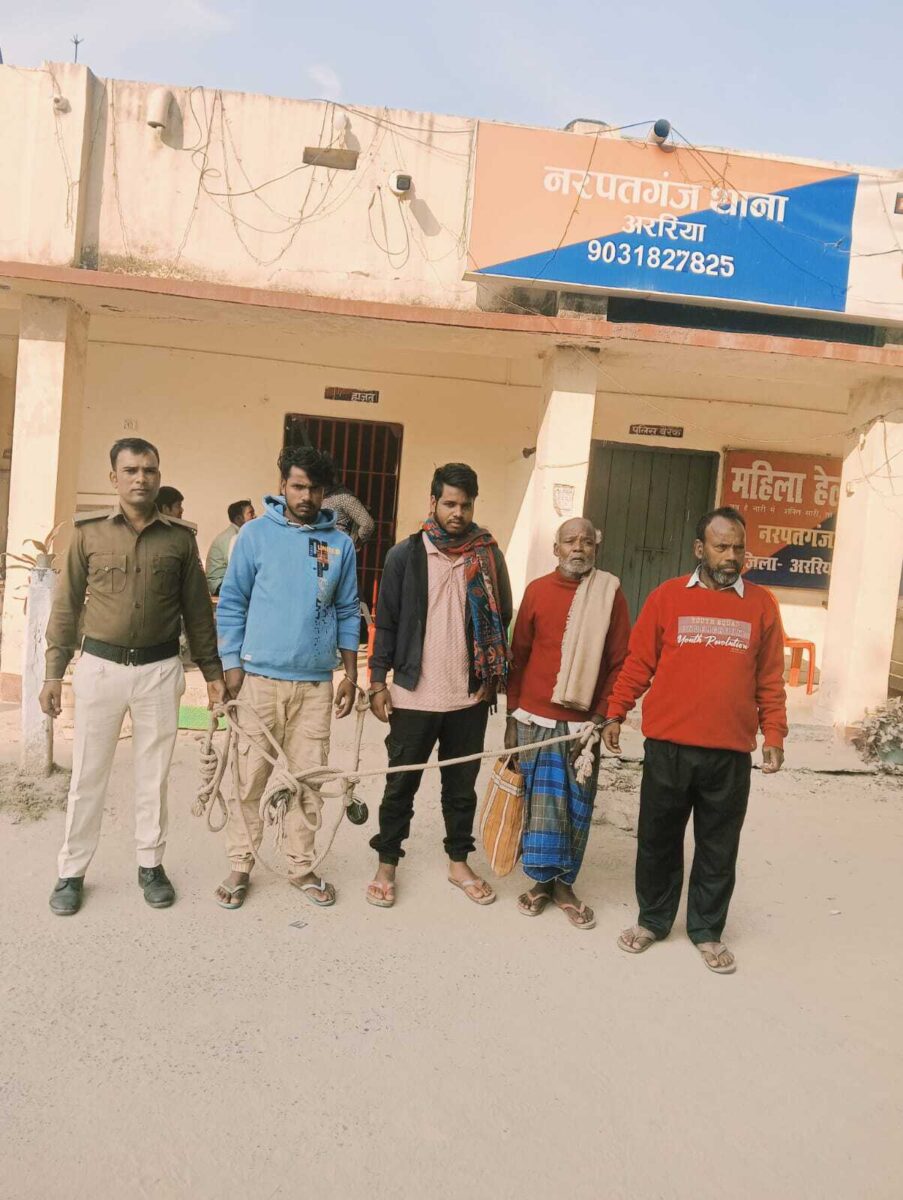 नरपतगंज. नरपतगंज पुलिस ने शनिवार की देर संध्या अलग-अलग जगहों पर छापेमारी अभियान चलाकर चार वारंटियों को गिरफ्तार कर लिया. गिरफ्तार वारंटी में पुलहा निवासी राजा ऋषिदेव पिता गुलाई ऋषिदेव, शेख टोला डुमरिया निवासी मो रियाज पिता मो इस्लाम, मो अमरेज पिता रियाज व मो आकाश पिता रियाज बताया जा रहा है. थानाध्यक्ष संजय कुमार ने बताया कि गिरफ्तार सभी वारंटी को आवश्यक पूछताछ के बाद रविवार को न्यायिक हिरासत में भेज दिया गया.