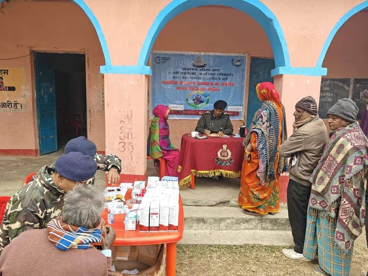 सिकटी. बुधवार को एसएसबी 52 वीं वाहिनी के द्वितीय कमान अधिकारी कार्यवाहक कमांडेंट पी नुपजाओ सिंह के निर्देशन में वाह्य सीमा चौकी मुरारीपुर कार्यक्षेत्र अंतर्गत मध्य विद्यालय मुरारीपुर में निःशुल्क मानव चिकित्सा शिविर लगाया गया. शिविर में सहायक कमांडेंट (चिकित्सक) डॉ मनोज जाट ने स्थानीय नागरिकों की स्वास्थ्य जांच के बाद निःशुल्क दवाई का वितरण किया. शिविर में 33 पुरुषों, 28 महिलाओं सहित 04 बच्चे कुल 65 मरीजों की जांच की गयी.