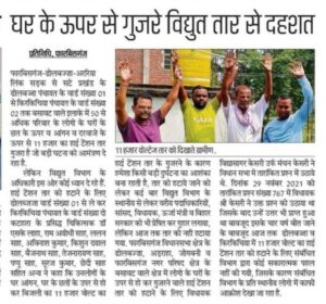 घरों के उपर से गुजर रहे हाई टेंशन तार को हटाया