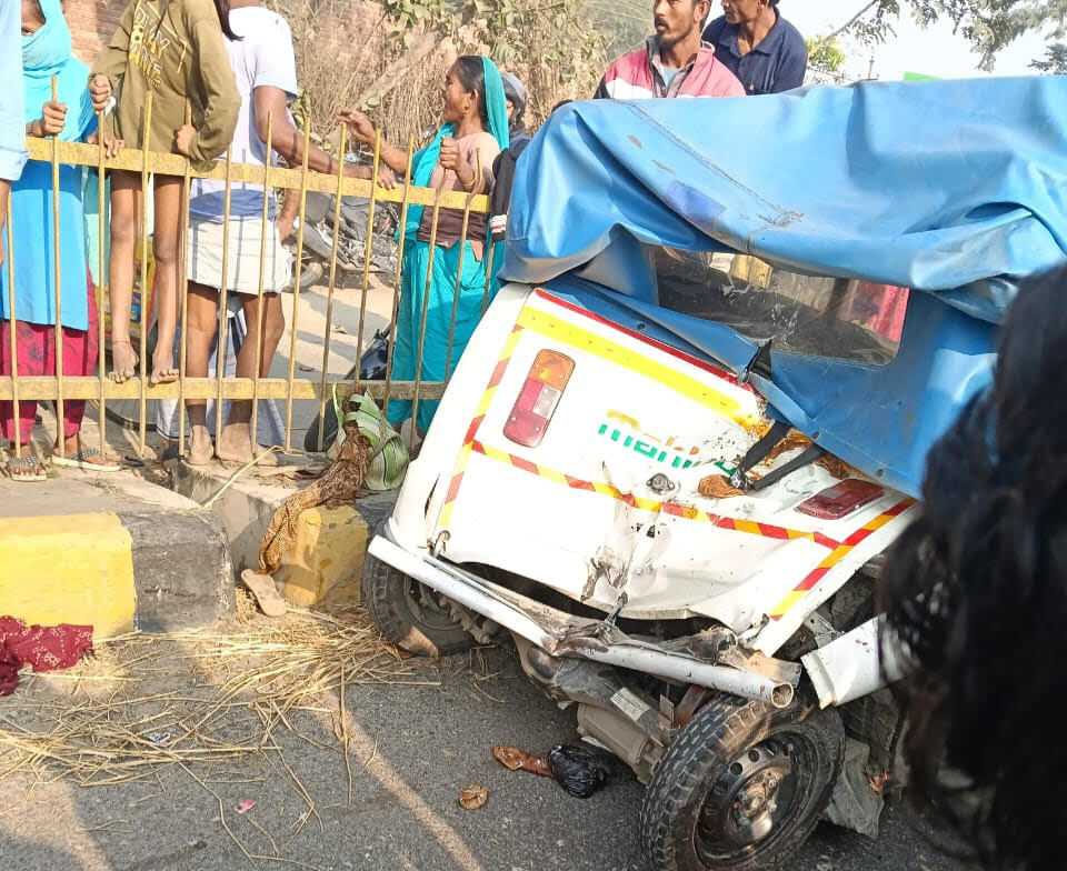 अररिया. फारबिसगंज-अररिया मार्ग एनएच 27 हरियाबाड़ा के समीप एक तेज रफ्तार हाईवा ट्रक ने एक ई-रिक्शा में जोरदार टक्कर मार दी जिससे ऑटो में सवार एक व्यक्ति पुरंदाहा निवासी 45 वर्षीय नसीम की मौत घटना स्थल पर ही हो गयी. वहीं 09 लोग घायल हो गये. घायलों में पुरंदाहा ऑटो चालक मो मोकतार, शाहिन, वजी, केशवर, कुजरी फरसाडांगी के तफिल, साविया, रूकशार, नुरअखतर, बुची, बीवी फकडो घायल हो गयी. आनन-फानन में स्थानीय लोगों की मदद से सभी घायलों को सदर अस्पताल में भर्ती कराया गया. जहां चिकित्सक ने घायलों का प्राथमिक उपचार के बाद बेहतर इलाज के लिए हायर सेंटर रेफर कर दिया. जबकि हाइवा चालक हाइवा छोड़कर फरार हो गया. घटना की सूचना मिलते ही लोगों की भीड़ घटनास्थल पर उमड़ पड़ी. घटना की सूचना मिलते ही यातायात थाना पुलिस व आरएस थाना पुलिस घटनास्थल पर पहुंची व शव को पोस्टमार्टम के लिए सदर अस्पताल भेज दिया. जानकारी के अनुसार सिमराहा थाना क्षेत्र के पुरंदाहा पंचायत के डोरिया वार्ड संख्या तीन निवासी नसीम अपने परिवार के साथ साथ ऑटो से अररिया की ओर जा रहा था. तभी हरियाबाड़ा के घलथर चौक के समीप एक तेज रफ्तार हाइवा ऑटो में जोरदार टक्कर दी. जिसमें घटनास्थल पर ही नसीम की मौत हो गयी. जबकि महिला सहित अन्य 09 लोग घायल हो गये. जिसे बेहतर इलाज के लिए हायर सेंटर रेफर किया गया है. नसीम की मौत की खबर मिलते ही उनके परिजनों में कोहराम मच गया. परिजनों का रो-रोकर बुरा हाल है. स्थानीय लोगों ने बताया की नसीम ही घर का सहारा था. जो पूरा परिवार का भरण-पोषण करता था. वह दिल्ली में रहकर मजदूरी करता था. कुछ माह पूर्व ही वह घर आया था. वहीं यातायात थानाध्यक्ष प्रेमचंद कुमार ने बताया कि ट्रक व ऑटो की टक्कर में एक व्यक्ति की मौत घटनास्थल पर ही हो गयी थी. शव का पोस्टमार्टम कराकर शव उनके परिजनों को सौंप दिया गया. घटना में 09 लोग घायल हुए हैं. हाइवा को जब्त कर लिया गया. प्राथमिकी दर्ज कर आगे की कार्रवाई की जा रही है.