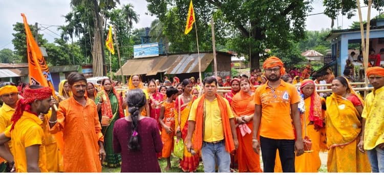 जोकीहाट. नगर पंचायत स्थित रामजानकी मंदिर परिसर से जल भरकर सैकड़ों श्रद्धालु बुधवार को कांवर यात्रा में शामिल हुए. इस कांवर यात्रा में महिला, पुरुष व बच्चे भी शामिल थे. कांवर यात्रा का नेतृत्व चंदन कुमार शर्मा, ओमप्रकाश शर्मा, कमल भगत, सुरेंद्र साह कर रहे थे. कांवर यात्रा में मुख्य रूप से दिवेश शर्मा, गुड्डू साह, संजय शर्मा, दिलीप शर्मा, छोटू, करण, जयकुमार के अतिरिक्त महिला भक्तों में नीलम देवी, सुमित्रा देवी, चंद्रकला देवी, राधा देवी, संध्या देवी, सरिता देवी, रानी देवी, सोनू देवी, फागुनी देवी, रीना देवी, रूपा, बुधनी, सीता सहित सैकड़ों श्रद्धालु बुधवार को पैदल यात्रा में शामिल थे. हर हर महादेव, बोल बम के जयघोष से वातावरण भक्तिमय बना रहा. सभी श्रद्धालु भगवा वस्त्र पहने थे. चंदन शर्मा ने बताया कि हर वर्ष सावन में यह यात्रा जोकीहाट से निकाली जाती है. उन्होंने बताया कि बाबा भोलेनाथ के भक्तों को पता हीं नहीं चलता है कि करीब 24 किलोमीटर की लंबी दूरी पैदल यात्रा आखिर कैसे तय हो जाती है. यात्रा में शामिल श्रद्धालु रामजानकी मंदिर परिसर स्थित पोखर से बुधवार की सुबह वैदिक मंत्रोच्चारण के साथ अपने-अपने कलश में जल भरे. जल लेकर ठेंगापुर, भेभड़ा चौक, काकन, तारण, बैरगाछी चौक, कनैन, सलायगढ़ होते हुए मदनपुर पहुंचकर पूजा अर्चना की. श्रद्धालुओं ने बताया कि मदनपुर स्थित बाबा मदनेश्वर नाथ बाबा की पूजा अर्चना से भक्तों की मनोकामनाएं पूरी होती है तभी तो हर वर्ष हम सभी इस कांवर यात्रा में शामिल होते हैं. जोकीहाट पुलिस सुरक्षा व्यवस्था को लेकर गश्त में लगी रही.