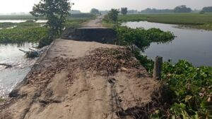 बाढ़ के पानी का बढ़ा दबाव, टूटी सड़क