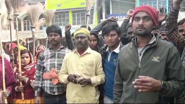 वेतन बढ़ोतरी को लेकर सफाई कर्मियों का प्रदर्शन