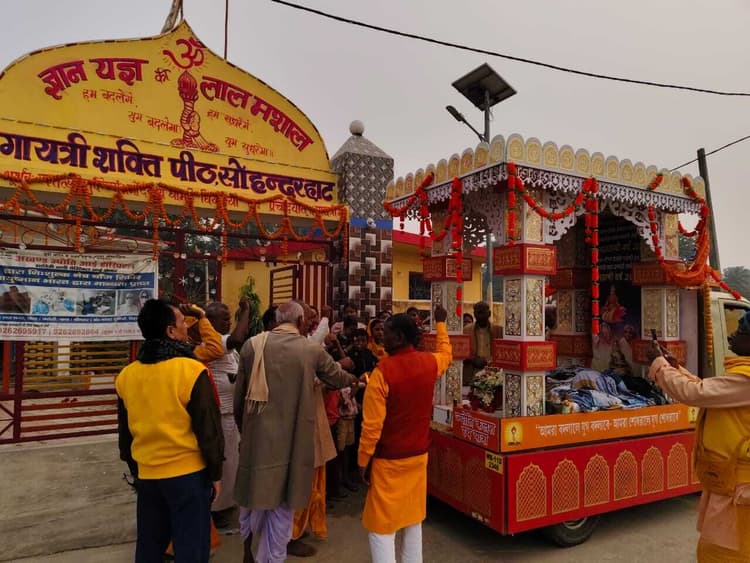 4- प्रतिनिधि, पलासी प्रखंड क्षेत्र के गायत्री शक्तिपीठ सोहंदर हाट में शताब्दी वर्ष के उपलक्ष्य में ज्योति कलश रथ यात्रा शांतिकुंज हरिद्वार से चल कर सिलीगुड़ी जोन के अंतर्गत गायत्री शक्तिपीठ सोहंदर हाट में रविवार को आगमन हुआ. रथ के साथ-साथ रघुनंदन प्रसाद व गंधर्व सिंह व हरिलाल सिंह चल रहे हैं. शक्तिपीठ से जुड़े गायत्री परिजन शिक्षक कुमार रणजीत ने बताया इस यात्रा का मुख्य उद्देश्य मनुष्य में देवत्व का उदय व धरती पर स्वर्ग का अवतरण है. स्वस्थ शरीर स्वच्छ मन व सभ्य समाज की संकल्पना के साथ हम बदलेंगे युग बदलेगा का उद्घोषणा इसका आधार है. ग्रामीणों व गायत्री शक्तिपीठ परिजनों द्वारा मंगलाचरण स्वस्तिवाचन के साथ ज्योति कलश की आरती उतार कर अपराह्न में जिला मुख्यालय अररिया के लिए प्रस्थान कर गयी. इस मौके पर धर्मनाथ झा, सहायक ट्रस्ट धर्मनाथ मंडल, दीपक कुमार जायसवाल, रवींद्र यादव, आनंदी यादव, शीला देवी, बिजली देवी, राजू जी आदि मौजूद थे. ——— हरिरा में उप स्वास्थ्य केंद्र नहीं, लोगों को परेशानी कुर्साकांटा. प्रखंड क्षेत्र के ग्राम पंचायत हरिरा में दशकों से उप स्वास्थ्य केंद्र की मांग पूरा नहीं होने से ग्रामीणों में आक्रोश व्याप्त है. जानकारी देते मुखिया जयकृष्ण सिंह ने बताया कि हरिरा पंचायत में उप स्वास्थ्य केंद्र की स्थापना को लेकर ग्रामीण लगातार मांग कर रहे हैं. लेकिन आश्वासन के सिवा ग्रामीणों कुछ नहीं मिला. मुखिया श्री सिंह ने बताया कि उप स्वास्थ्य केंद्र को लेकर सरकारी भूमि भी अधिग्रहित कर ली गयी है. इसके साथ ही उक्त जमीन का सीओ आलोक कुमार ने अनापत्तिकरण प्रमाण पत्र भी निर्गत कर चुका है. उसके बावजूद उप स्वास्थ्य केंद्र की स्थापना नहीं हो सकी है. मुखिया श्री सिंह ने बताया कि उप स्वास्थ्य केंद्र नहीं रहने के कारण ग्रामीणों को सात किलोमीटर दूरी तय कर पीएचसी कुर्साकांटा जाना पड़ता है. ऐसे में सबसे अधिक परेशानी गर्भवती महिलाओं के परिजनों को होती है. जब देर रात प्रसव पीड़ा से परेशान गर्भवती महिलाओं को लेकर पीएचसी जाना परेशानी का सबब बनता रहा है.