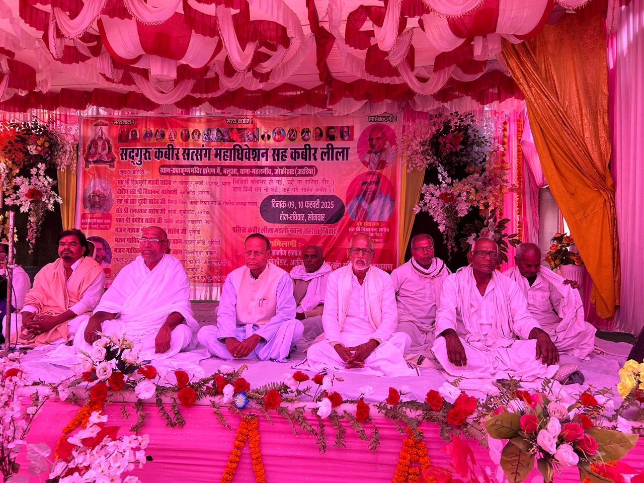 7- प्रतिनिधि, जोकीहाट प्रखंड क्षेत्र के कुर्सेल पंचायत अंतर्गत बलुआ गांव राधाकृष्ण मंदिर परिसर में रविवार व सोमवार को दो दिवसीय सदगुरु कबीर सत्संग महाधिवेशन सह कबीर लीला का आयोजन किया गया. इस महाधिवेशन का आयोजन बलुआ गांव के लोगों के द्वारा किया गया. सत्संग में उपस्थित श्रद्धालुओं को संबोधित करने वाले संत शिवमुनि शास्त्री कोल्हापुर महाराष्ट्र, संत विद्यानंद जी कुर्साकांटा, प्रोफेसर दुखी नेपाल, रामप्रसाद बाबा, धर्मदेव बाबा नेपाल, मिथिलेश बाबा पुर्णिया, भजन गायिका साध्वी उर्मिला बहन, सिलीगुड़ी से साध्वी रामरती बहन आदि शामिल थे. शिवमुनि ने कहा कि सामाजिक एकता व समरसता के लिए कबीर के बताये मार्ग पर चलना होगा. कबीर ने पाखंड व दिखावा पर चोट किया है. हमें प्रत्येक प्राणियों से प्रेम करना चाहिये. सत्संग से मन के विचारों में उत्कृष्टता आती है. उच्च विचारों से समाज का विकास व मनुष्य को मोक्ष्य मिलता है. इस अवसर पर अन्य साधु संतों ने भी अपने अपने विचार रखें. इस अवसर पर मेले का भी आयोजन किया गया था. दो दिवसीय सत्संग को लेकर गांव में चहलपहल थी. संत्सग समिति द्वारा भंडारा, पेयजल की भी समुचित व्यवस्था की गई थी. मौके पर सैकड़ों कार्यकर्ता व श्रद्धालु उपस्थित थे.