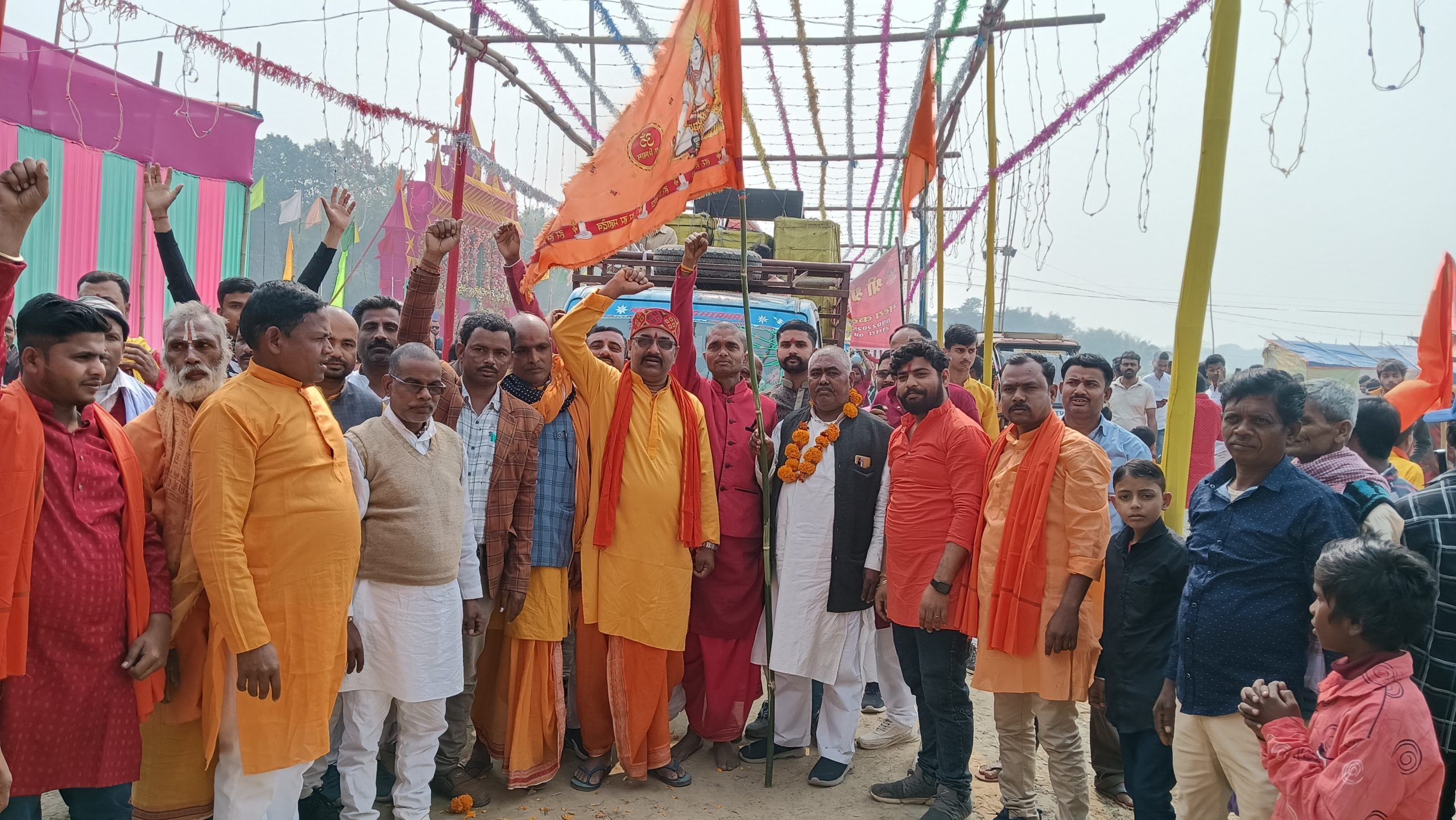 -8-प्रतिनिधि, पलासी प्रखंड क्षेत्र के मजलिसपुर पंचायत के शिव दुर्गा नगर भटवार में 09 से 20 फरवरी तक आयोजित 12 दिवसीय श्री-श्री 1008 महारुद्र यज्ञ को लेकर रविवार को कलश यात्रा निकाली गयी. कलश यात्रा पूर्व प्रखंड प्रमुख सह प्रमुख प्रतिनिधि सदानंद यादव, मुखिया प्रभुचंद विश्वास सहित समस्त ग्रामीणों के नेतृत्व में निकाली गयी. कलश यात्रा में 21 सौ कुमारी कन्याओं व विवाहिता ने भाग लिया. कलश यात्रा यज्ञ स्थल से होते हुए भटवार, पनडुब्बी, मजलिसपुर चौक, पेट्रोल पंप से भटवार गांव स्थित शिव मंदिर शिवालय में सभी कुमारी कन्याओं व विवाहिता ने कलश में जल भरकर पुनः यज्ञ स्थल पर कलश स्थापित किया गया. महारुद्र यज्ञ में काशी बनारस से महान पंडित मुकेश शास्त्री के अगवाई में 17 पंडित व स्थानीय 08 पंडितों ने भाग लिया. वहीं 10 फरवरी सोमवार को महा पंडित मुकेश शास्त्री के नेतृत्व में दैविक उच्चारण के साथ यज्ञ प्रारंभ किया जायेगा. जो 20 फरवरी तक आयोजित रहेगा. यज्ञ स्थल पर महा भागवत कथा प्रत्येक दिन 02 बजे दिन से संध्या 05 बजे तक भागवत कथा वाचिका देवी शिवा किशोरी वृंदावन किया जायेगा. वहीं गंगा आरती 06 बजे संध्या से 07 बजे तक आयोजित किया जायेगा. वहीं कलश यात्रा में मंदिर कमेटी के पदधारक व सदस्यगण सहित सैकड़ों ग्रामीण मौजूद थे.